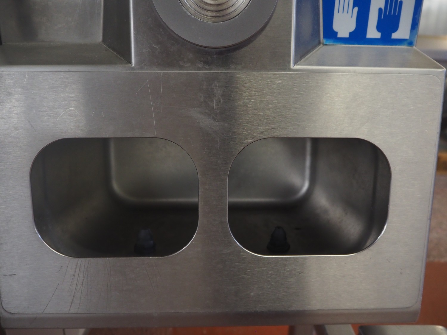 KET Edelstahltechnik GmbH hand disinfection station, dimensions: 550 mm x 500 mm x 1150 mm.