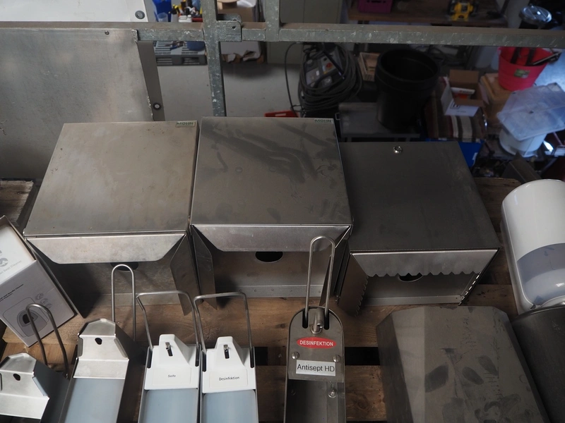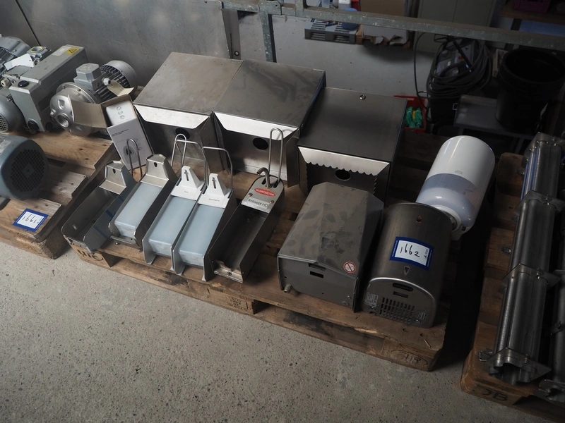 Pallet with various hygiene equipment, 5 soap dispensers, 4 paper dispensers, dimensions: 1200 mm x 800 mm x 450 mm.