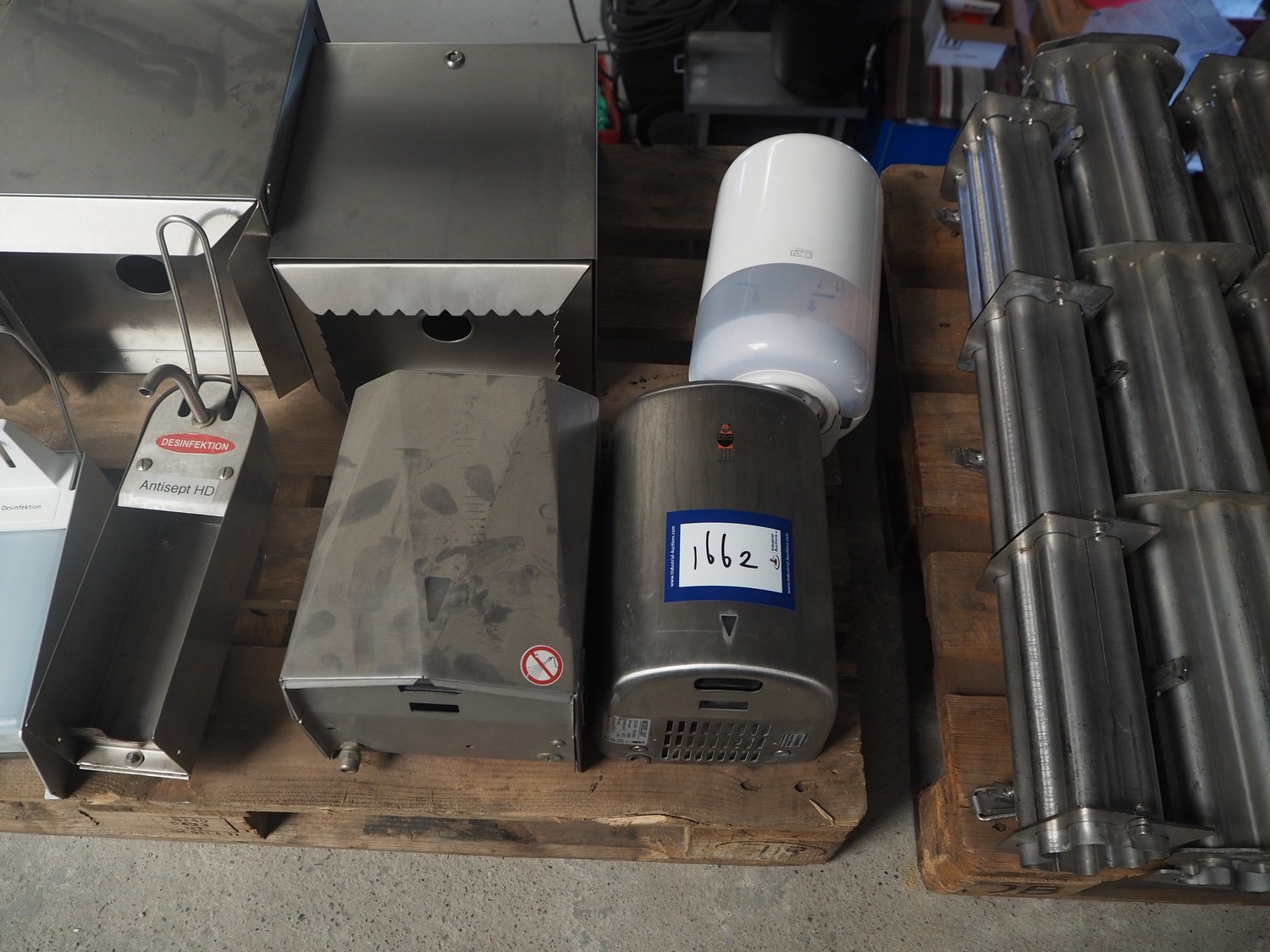 Pallet with various hygiene equipment, 5 soap dispensers, 4 paper dispensers, dimensions: 1200 mm x 800 mm x 450 mm.