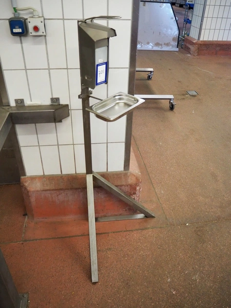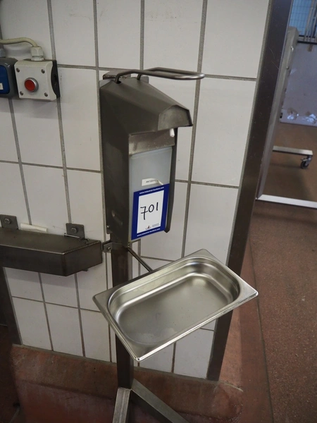 S/s soap dispenser, dimensions: 400 mm x 400 mm x 1400 mm.