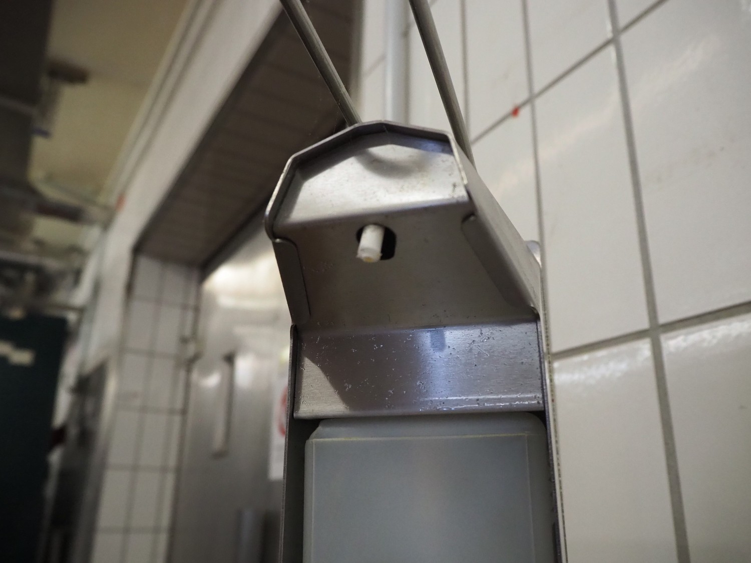 S/s soap dispenser, dimensions: 400 mm x 400 mm x 1400 mm.