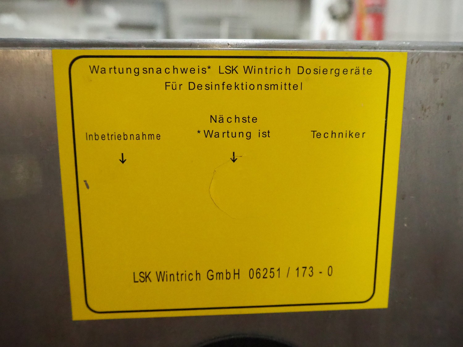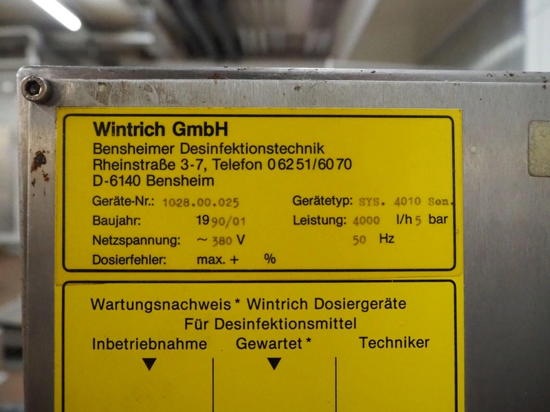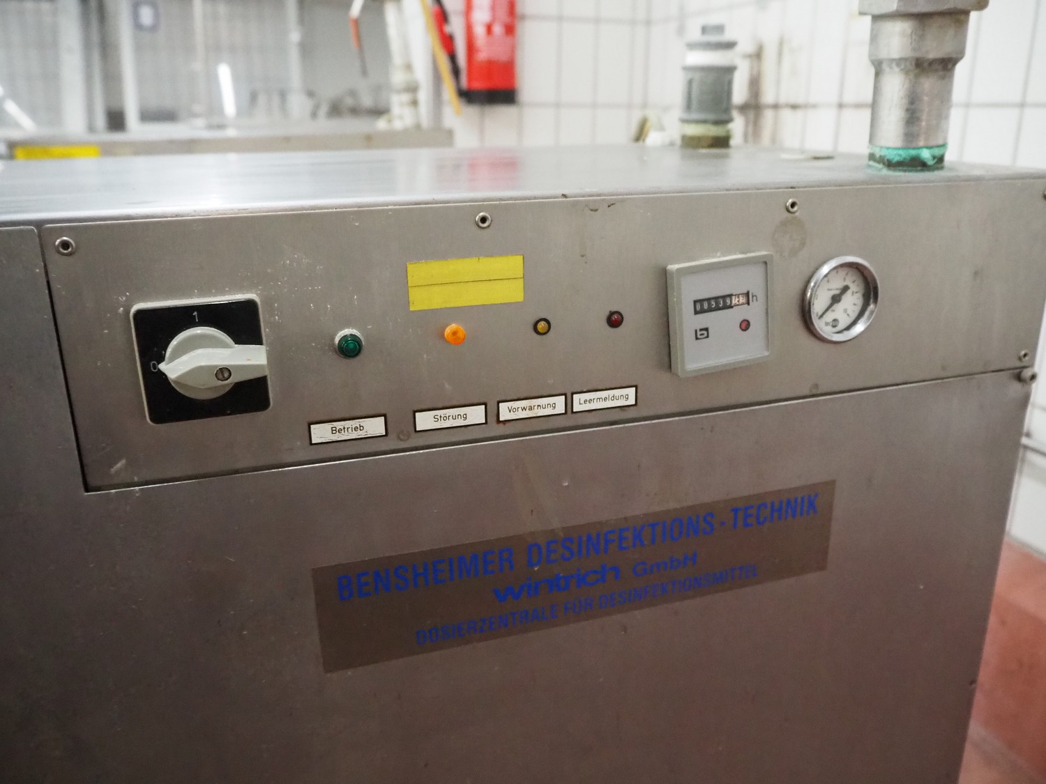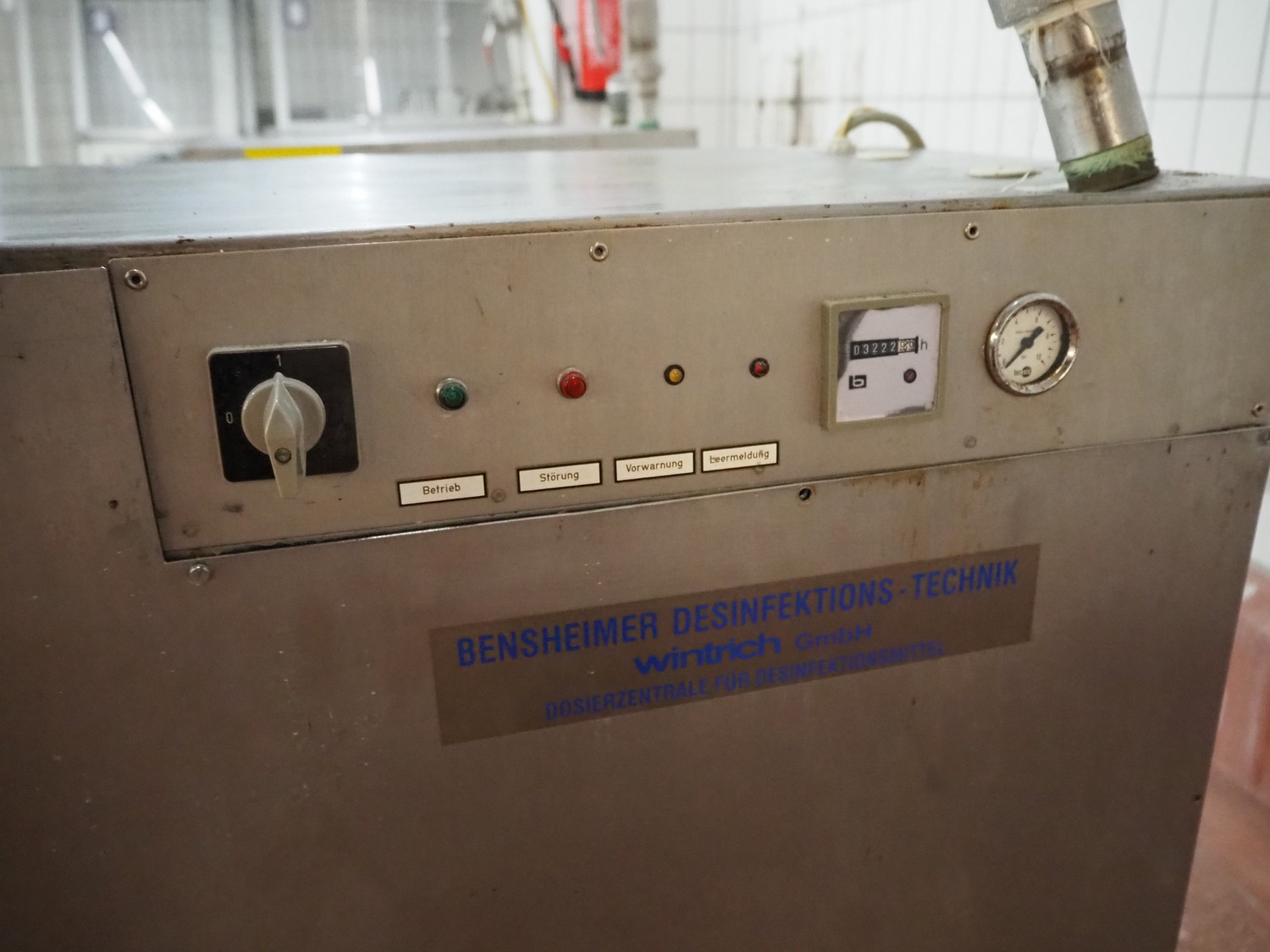 3 Wintrich GmbH dosing unit for disinfection with KSB circulation pump, type dosing unit: SYS. 4010 Son, type pump: MOVITEC V4-11, fabrication number: 11/2005/280827, capacity: 5 m³ per hour, dimensions dosing unit: (3x) 400 mm x 800 mm x 1050 mm, dimensions circulation pump: (3x) 200 mm x 250 mm x 960 mm.