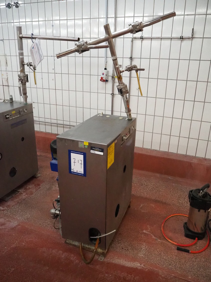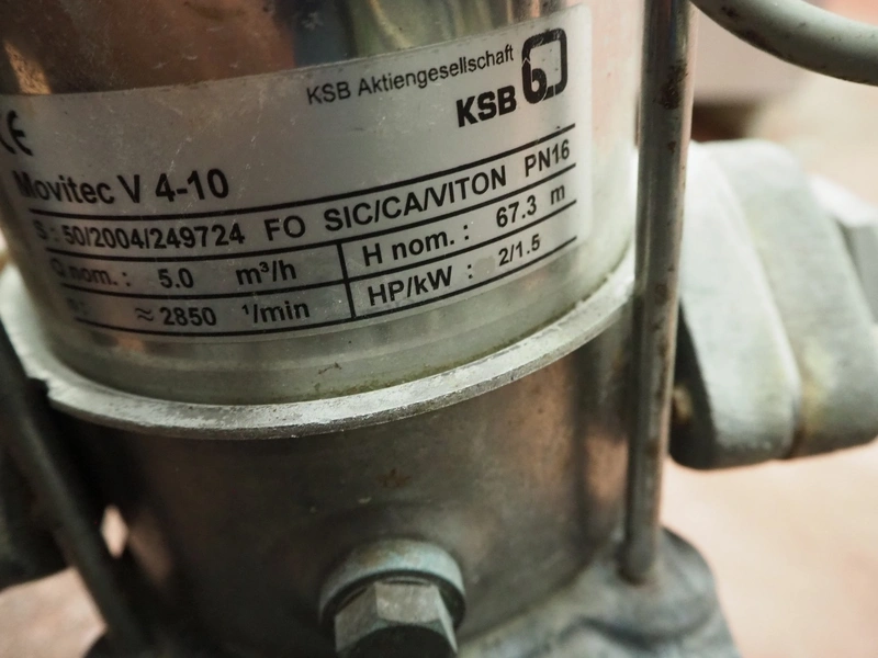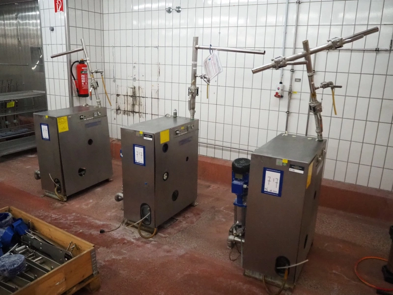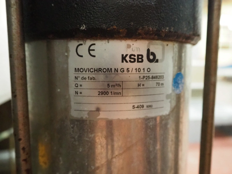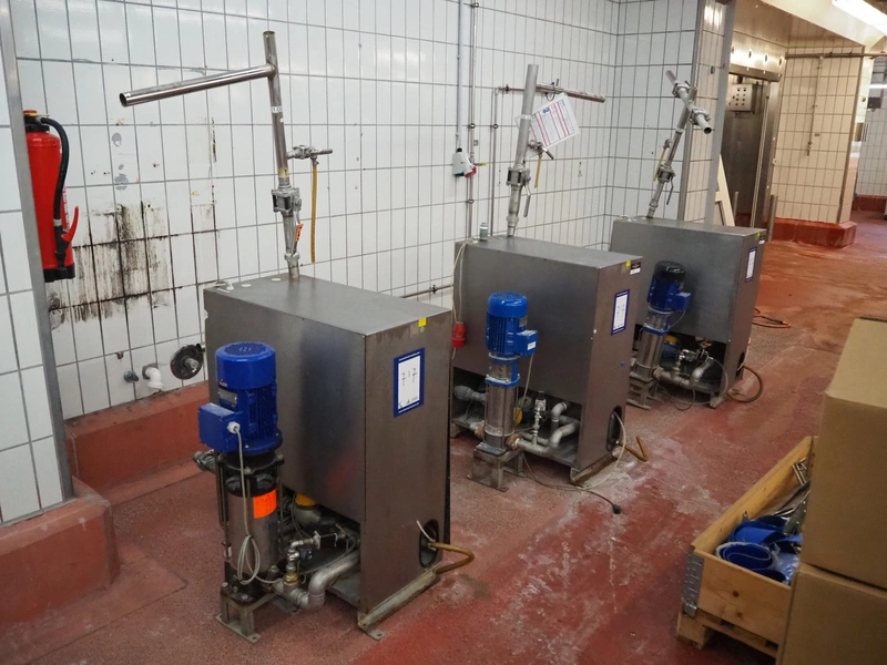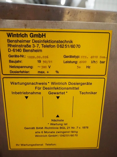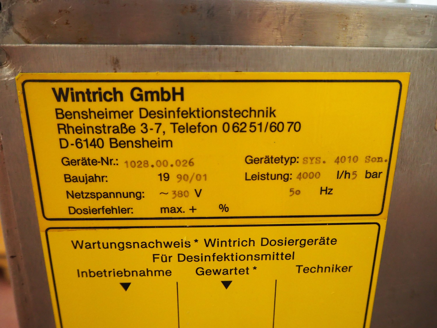 3 Wintrich GmbH dosing unit for disinfection with KSB circulation pump, type dosing unit: SYS. 4010 Son, type pump: MOVITEC V4-11, fabrication number: 11/2005/280827, capacity: 5 m³ per hour, dimensions dosing unit: (3x) 400 mm x 800 mm x 1050 mm, dimensions circulation pump: (3x) 200 mm x 250 mm x 960 mm.