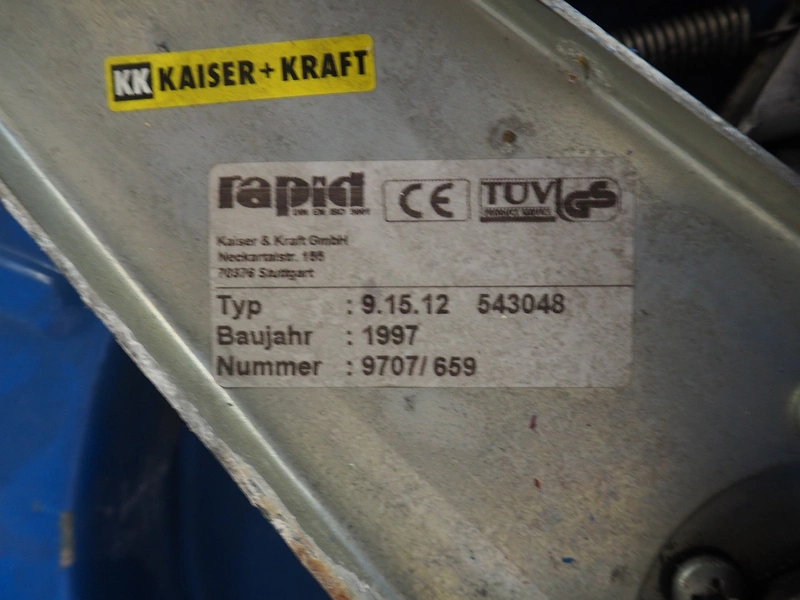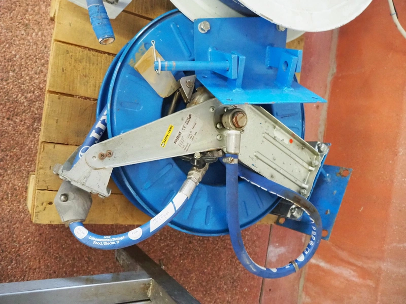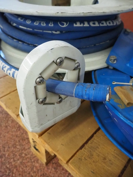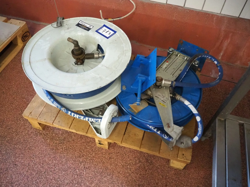 Pallet with Kaiser + Kraft hose reel with Semperit plastic hoses and Rapid hose reel, total dimensions: 1040 mm x 700 mm x 460 mm.