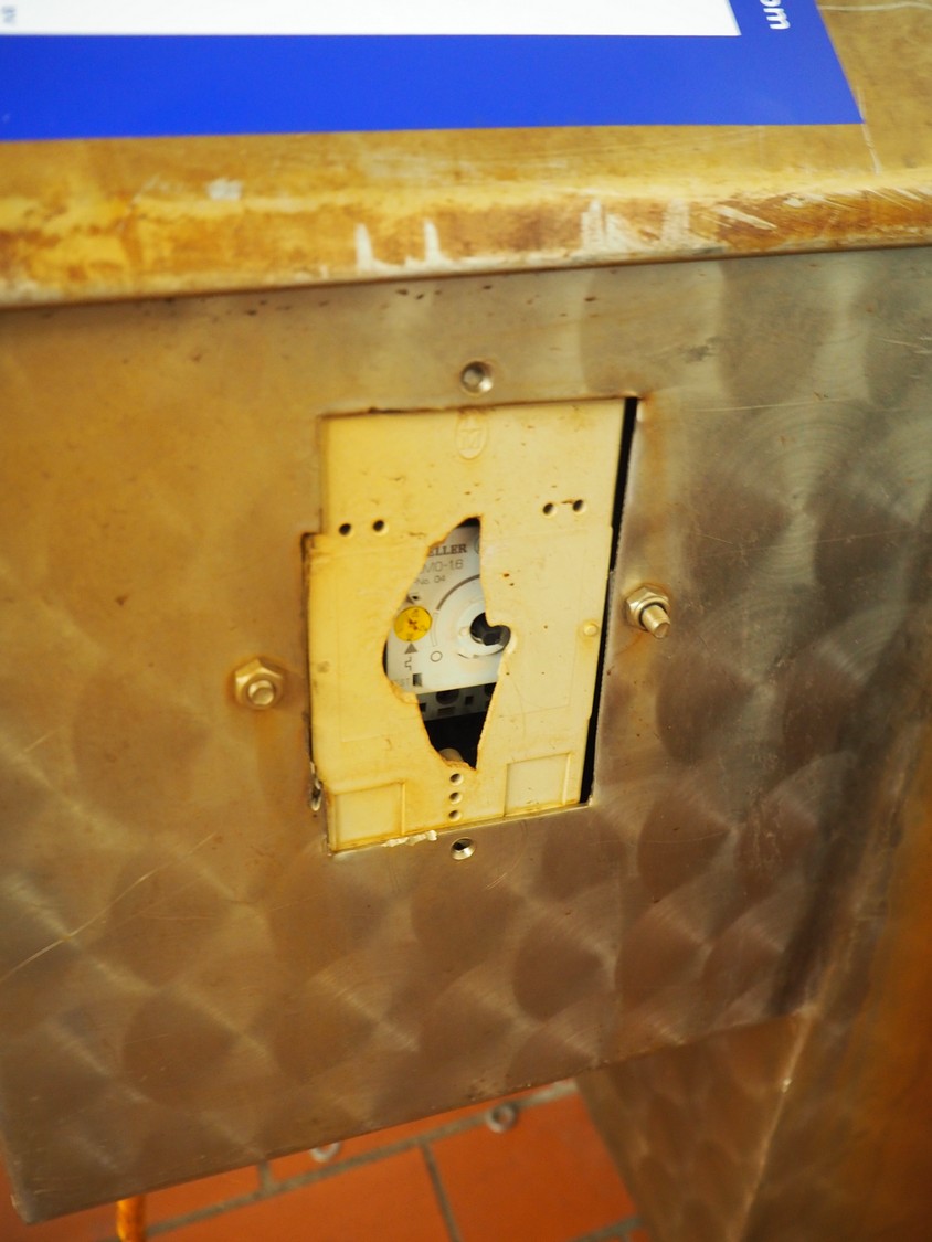 Apron washer, brush length: 1000 mm, total dimensions: 1370 mm x 500 mm x 900 mm. Button broken.
