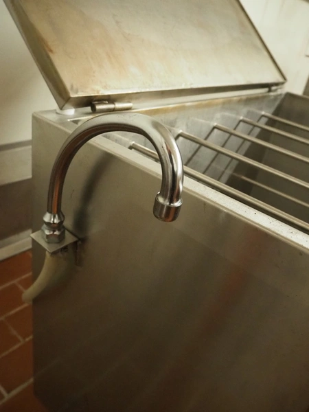 S/s sterilizer, inside dimensions: 900 mm x 400 mm x 630 mm, total dimensions: 940 mm x 480 mm x 830 mm.