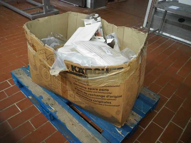 Carton box with Kärcher parts, amongst other paper filter bags.