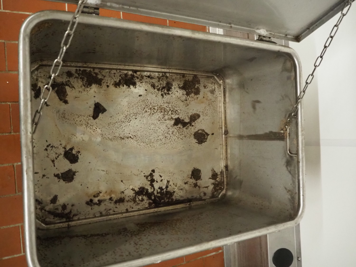 S/s mobile tub, inside dimensions: 820 mm x 580 mm x 440 mm, total dimensions: 870 mm x 620 mm x 660 mm.