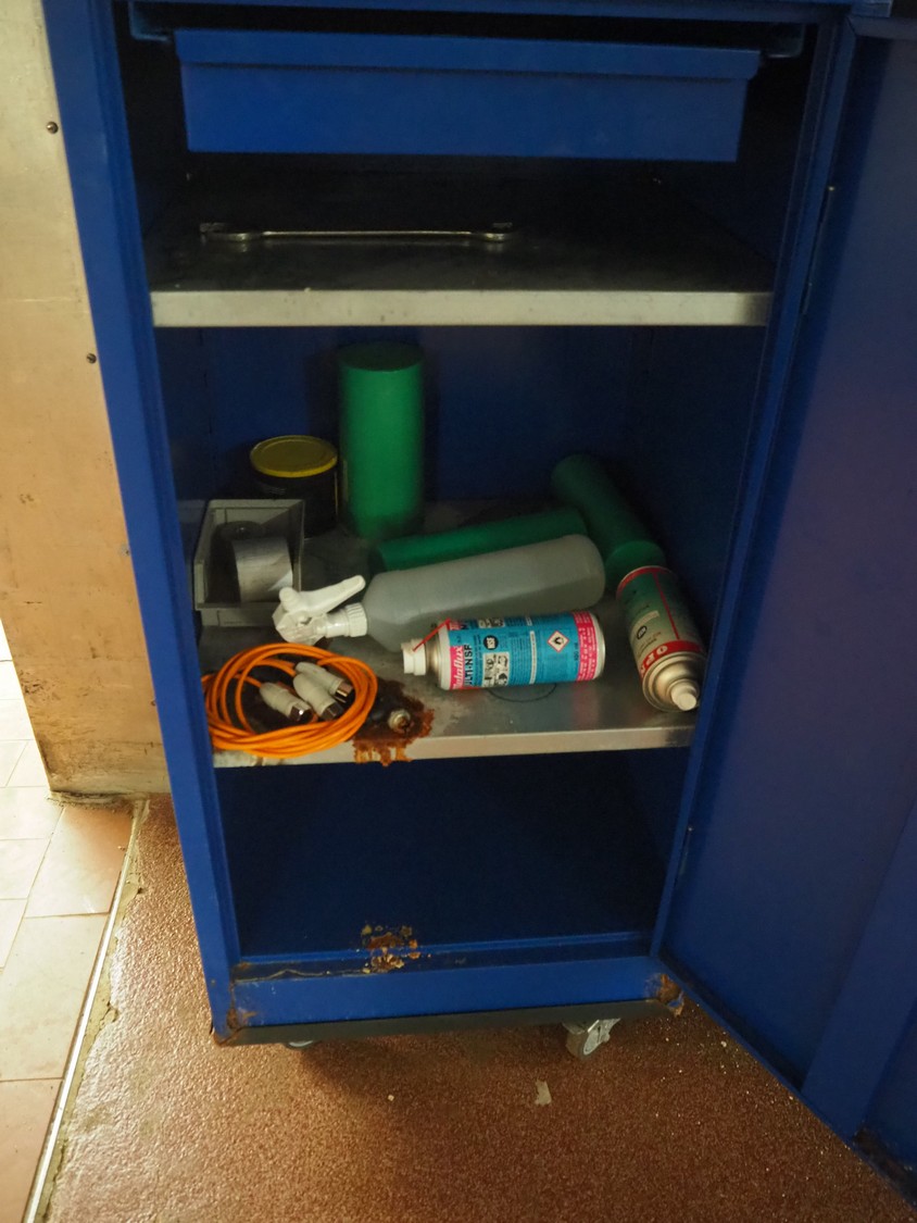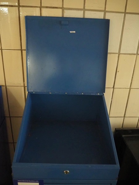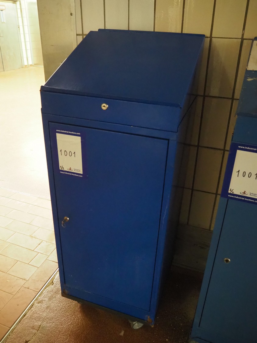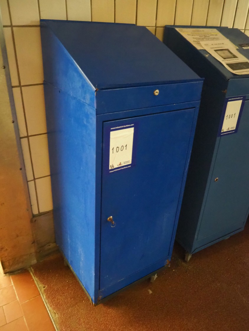 Steel mobile writing desks on s/s trolley, dimensions: (2x) 500 mm x 500 mm x 1360 mm.