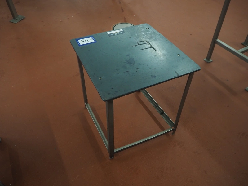 S/s table, plastic top, dimensions: 500 mm x 500 mm x 550 mm.