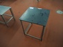 S/s table, plastic top, dimensions: 500 mm x 500 mm x 550 mm.