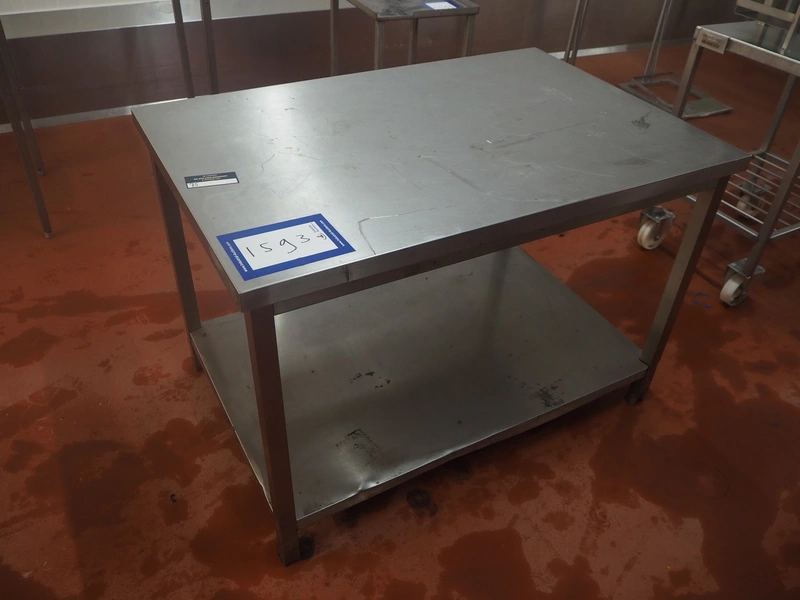 S/s table, dimensions: 800 mm x 1200 mm x 800 mm.
