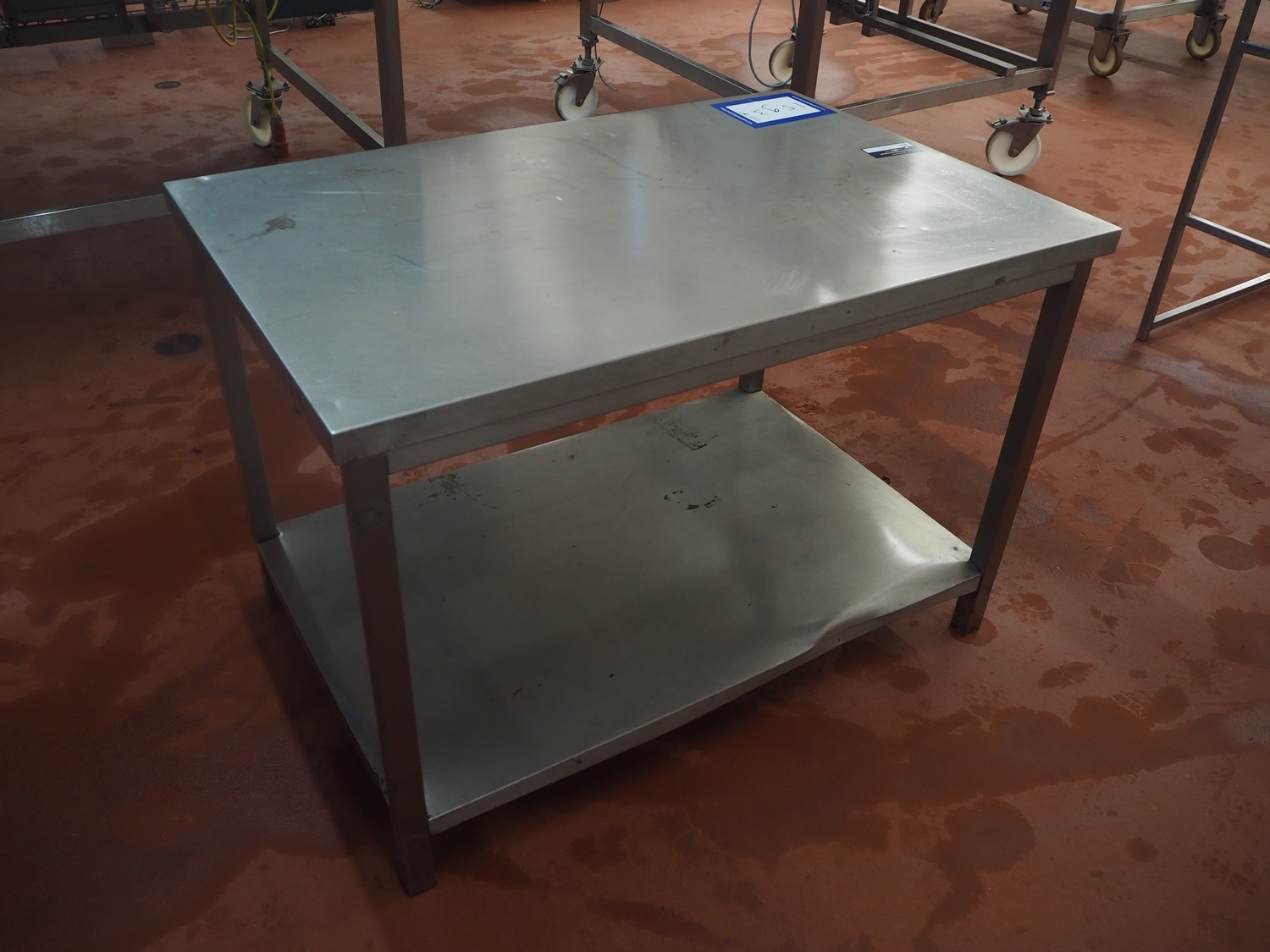 S/s table, dimensions: 800 mm x 1200 mm x 800 mm.
