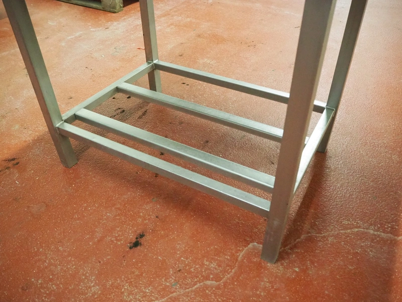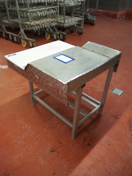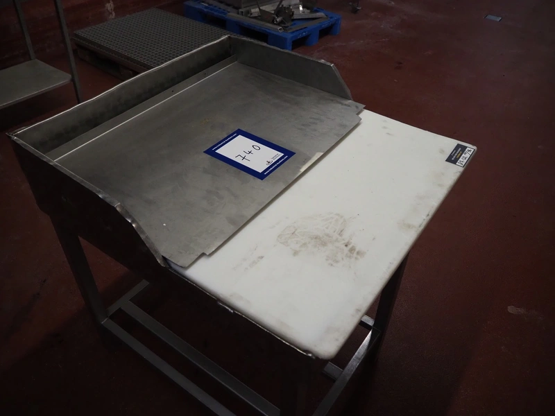 S/s table with plastic top, dimensions: 900 mm x 835 mm x 900 mm.