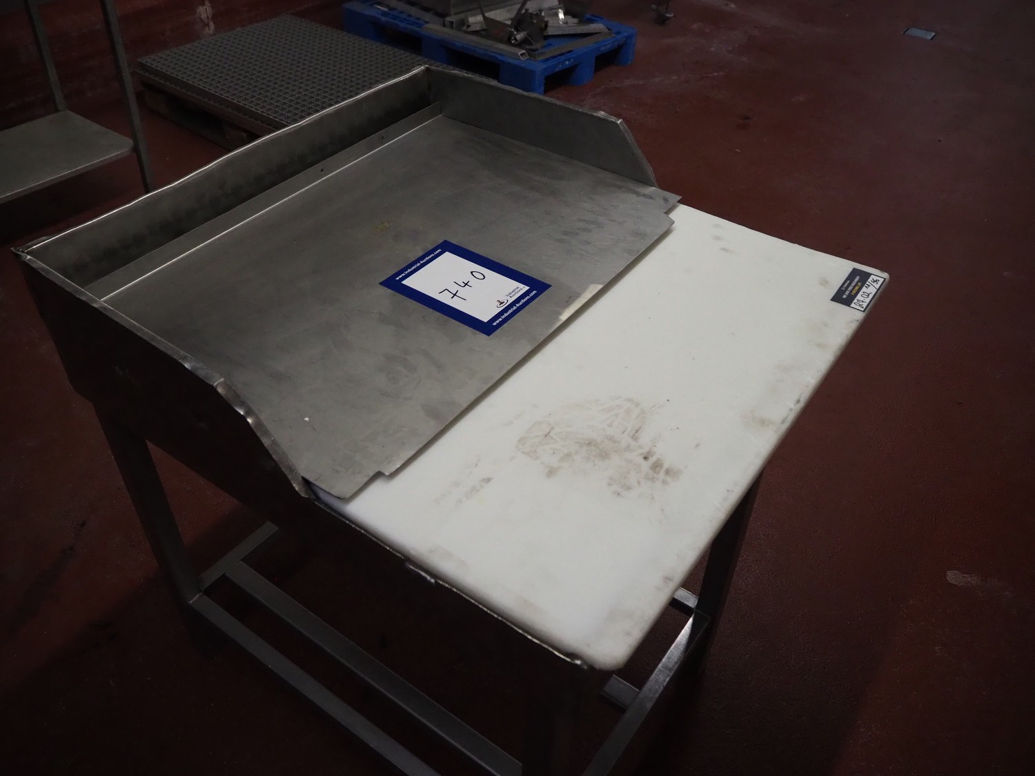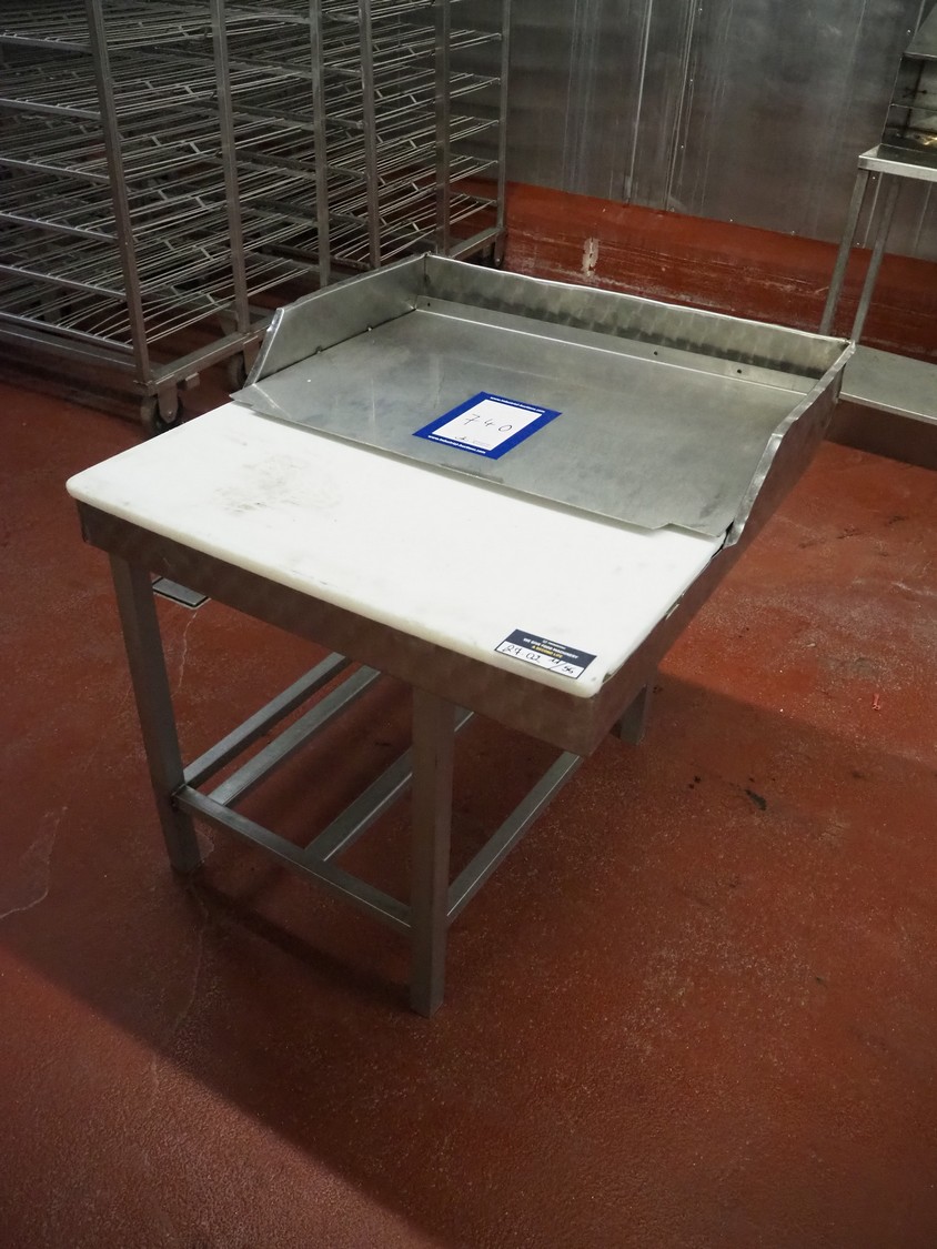 S/s table with plastic top, dimensions: 900 mm x 835 mm x 900 mm.