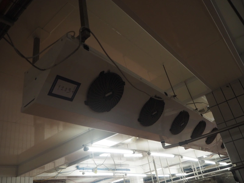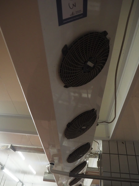 Güntner GmbH & Co. KG evaporator, device type: S-GGDF 030.1C/57-AN151/6P.E, serial number: 400/3581560.0002, year of construction: 2011, maximum / minimum pressure: 16 bar / -1 bar, maximum / minimum temperature: 100°C / -50°C, 5 fans, dimensions: 3900 mm x 500 mm x 350 mm.