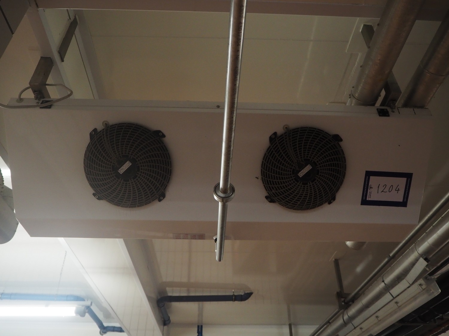 Güntner GmbH & Co. KG evaporator, device type: S-GGDF 030.1C/27-AN151/12P.E, serial number: 400/3581816.0002, year of construction: 2011, maximum / minimum pressure: 16 bar / -1 bar, maximum / minimum temperature: 100°C / -50°C, volume: 6.6 liter, 2 fans, dimensions: 1600 mm x 600 mm x 330 mm.