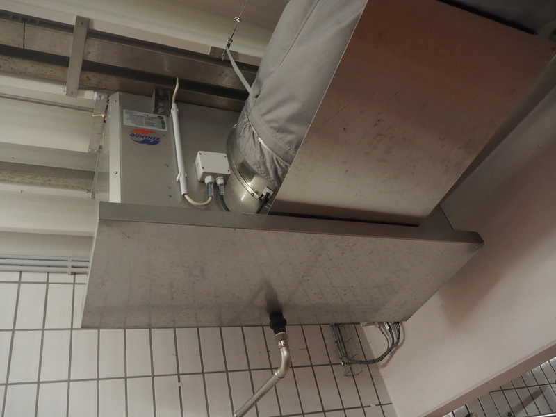 Güntner GmbH & Co. KG s/s evaporator with air sock, device type: S-GGN 051B/14/20P, serial number: 400/61279309, year of construction: 2005, maximum / minimum pressure: 16 bar / -1 bar, maximum / minimum temperature: 95°C / -50°C, volume: 13 liter, 1 fan, dimensions: 1400 mm x 500 mm x 690 mm.