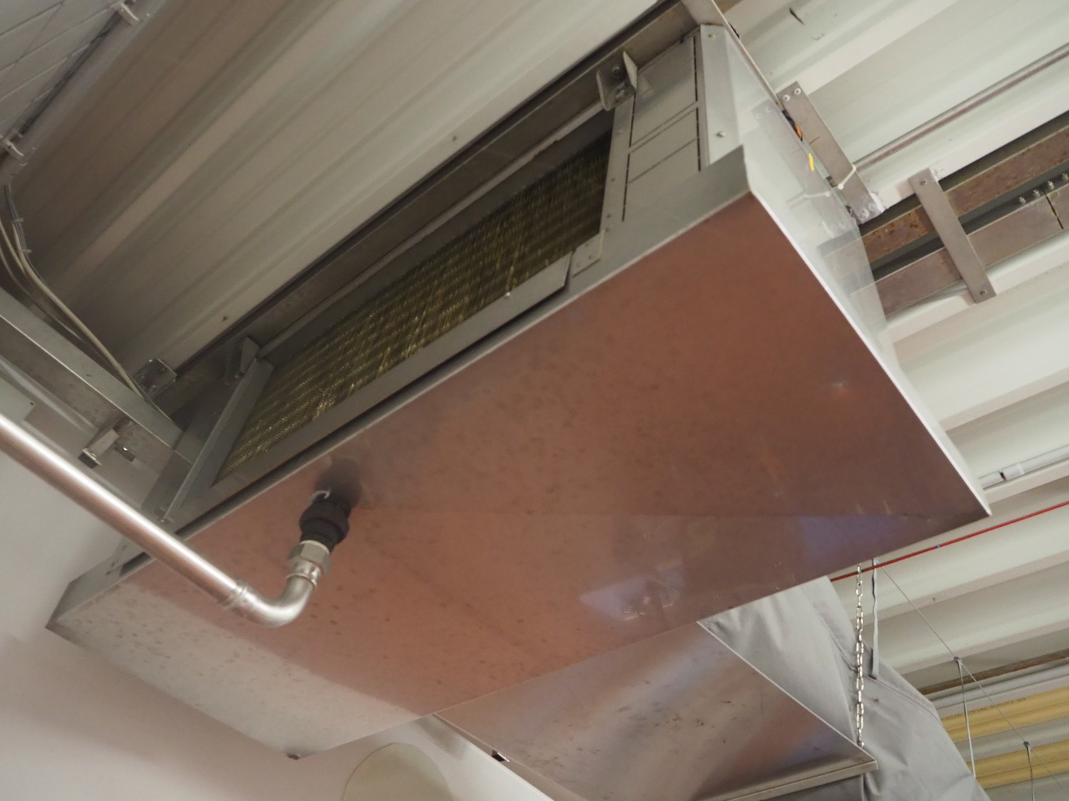 Güntner GmbH & Co. KG s/s evaporator with air sock, device type: S-GGN 051B/14/20P, serial number: 400/61279309, year of construction: 2005, maximum / minimum pressure: 16 bar / -1 bar, maximum / minimum temperature: 95°C / -50°C, volume: 13 liter, 1 fan, dimensions: 1400 mm x 500 mm x 690 mm.