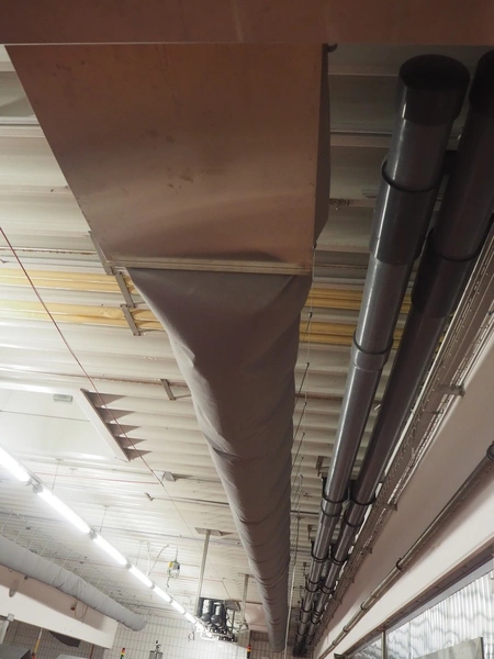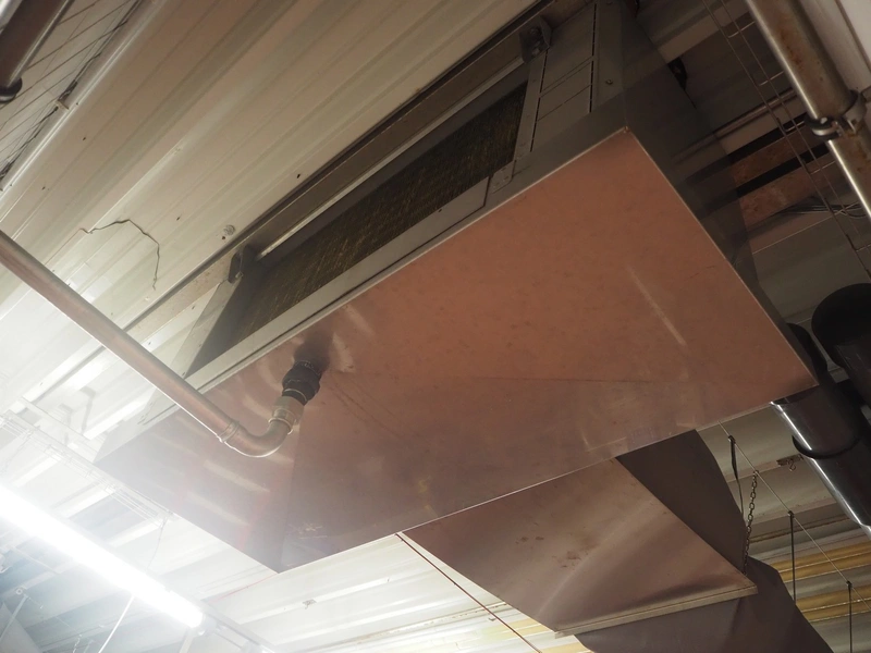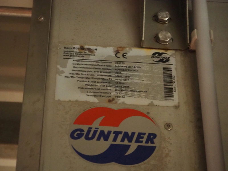 Güntner GmbH & Co. KG s/s evaporator with air sock, device type: S-GGN 051B/14/20P, serial number: 400/61279302, year of construction: 2005, maximum / minimum pressure: 16 bar / -1 bar, maximum / minimum temperature: 95°C / -50°C, volume: 13 liter, 1 fan, dimensions: 1400 mm x 500 mm x 690 mm.