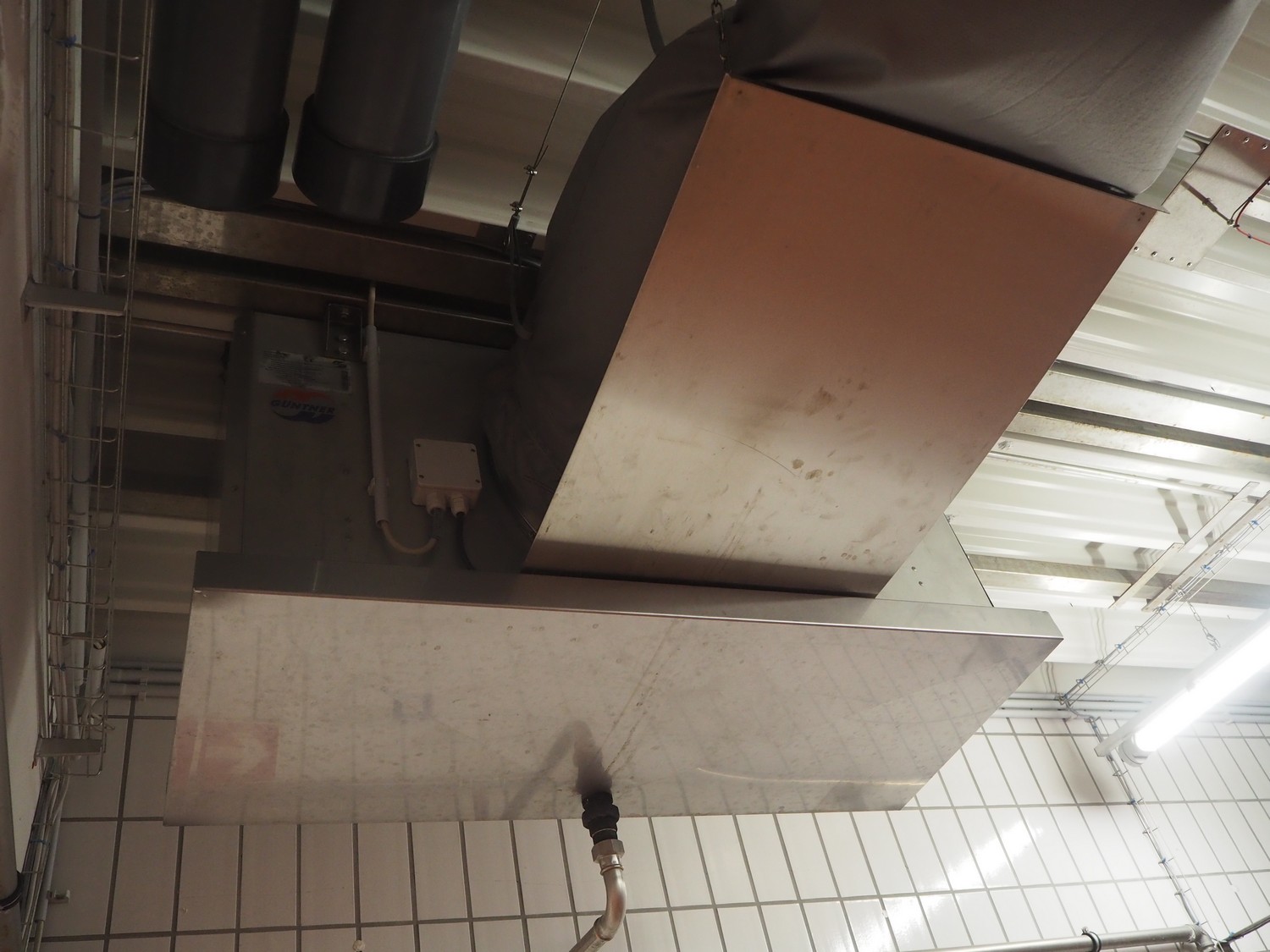 Güntner GmbH & Co. KG s/s evaporator with air sock, device type: S-GGN 051B/14/20P, serial number: 400/61279302, year of construction: 2005, maximum / minimum pressure: 16 bar / -1 bar, maximum / minimum temperature: 95°C / -50°C, volume: 13 liter, 1 fan, dimensions: 1400 mm x 500 mm x 690 mm.