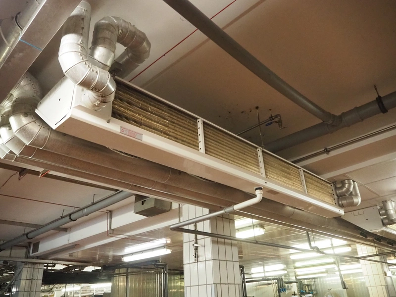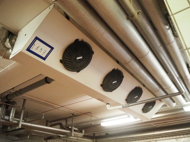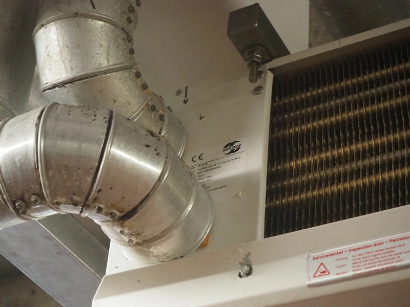 Güntner GmbH & Co. KG evaporator, device type: S-GGDF 030.1C/47-AN151/8+6P.E, serial number: 400/358181801, year of construction: 2011, maximum / minimum pressure: 16 bar / -1 bar, maximum / minimum temperature: 100°C / -50°C, 4 fans, dimensions: 3000 mm x 500 mm x 350 mm.