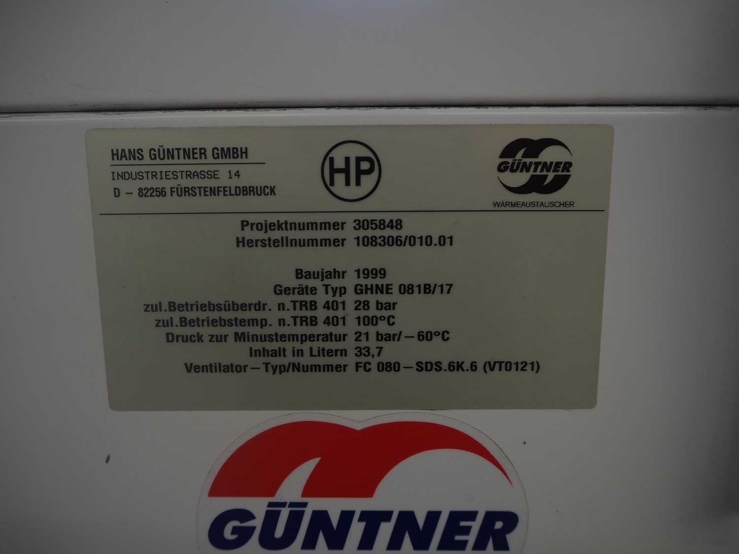 Güntner GmbH & Co. KG evaporator, type: GHNE 081B/17, number: 108306/010.01, year of construction: 1999, dimensions: 2000 mm x 1500 mm x 1000 mm. With air sock.
