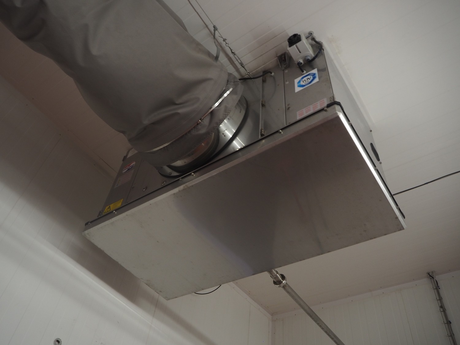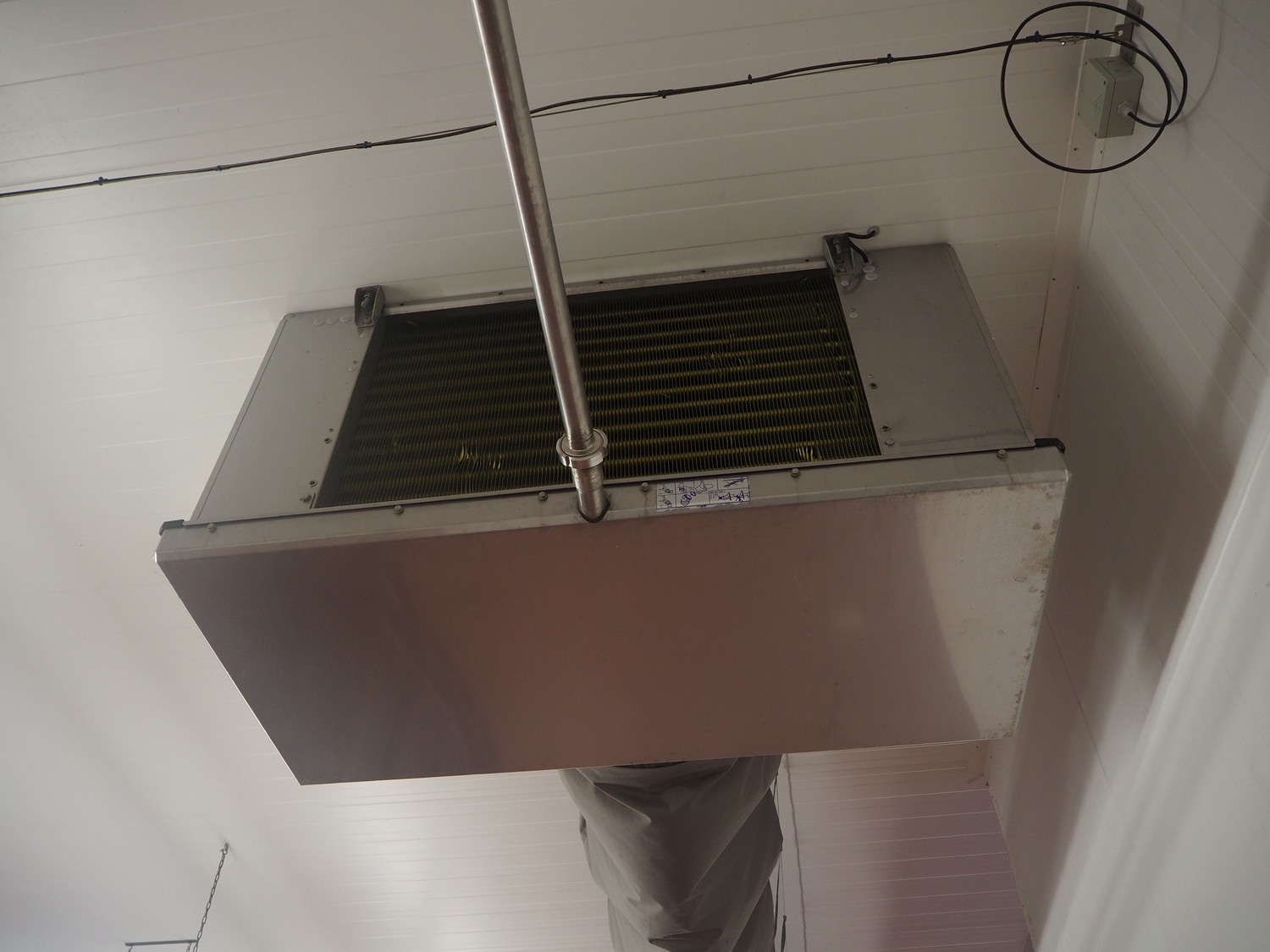 Güntner GmbH & Co. KG s/s evaporator with air sock, device type: S-GGHN 050.2H/17-ANS51/16P.E, serial number: 404204095/15.01768, year of construction: 2015, maximum / minimum pressure: 16 bar / -1 bar, maximum / minimum temperature: 100°C / -50°C, volume: 23.6 liter, 1 fan, dimensions: 1400 mm x 1000 mm x 750 mm.