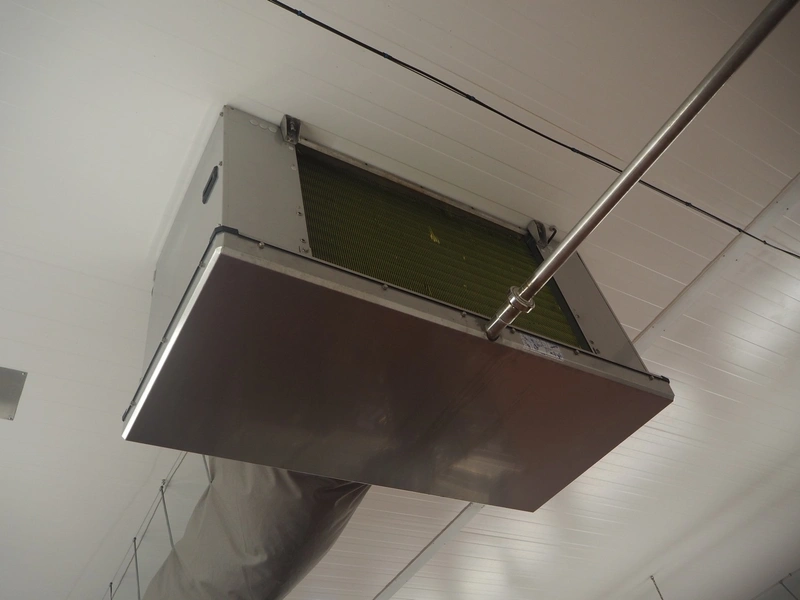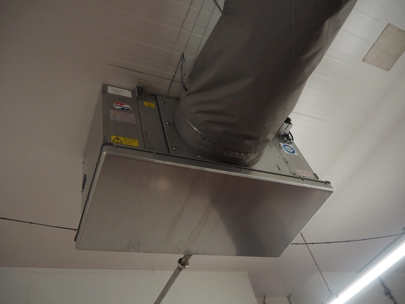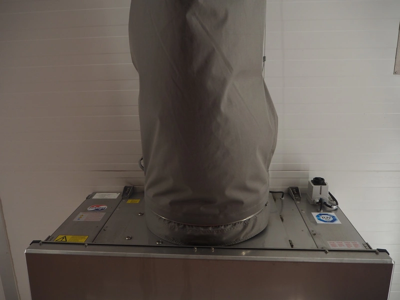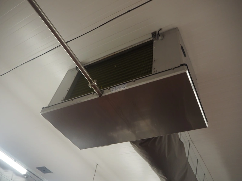 Güntner GmbH & Co. KG s/s evaporator with air sock, device type: S-GGHN 050.2H/17-ANS51/16P.E, serial number: 404204095/15.01769, year of construction: 2015, maximum / minimum pressure: 16 bar / -1 bar, maximum / minimum temperature: 100°C / -50°C, volume: 23.6 liter, 1 fan, dimensions: 1400 mm x 1000 mm x 750 mm.