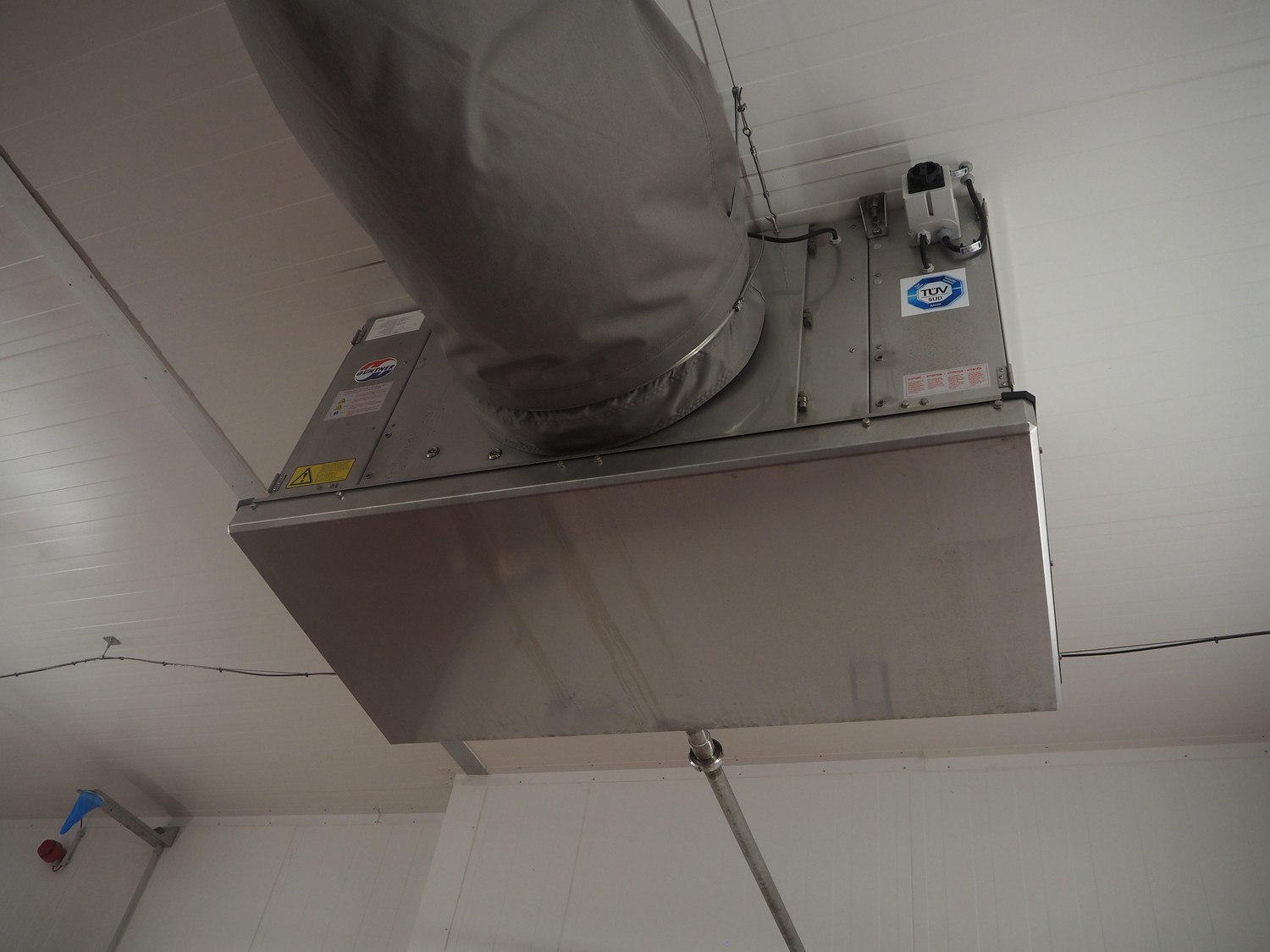 Güntner GmbH & Co. KG s/s evaporator with air sock, device type: S-GGHN 050.2H/17-ANS51/16P.E, serial number: 404204095/15.01769, year of construction: 2015, maximum / minimum pressure: 16 bar / -1 bar, maximum / minimum temperature: 100°C / -50°C, volume: 23.6 liter, 1 fan, dimensions: 1400 mm x 1000 mm x 750 mm.