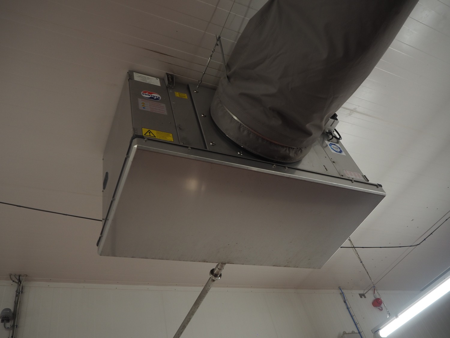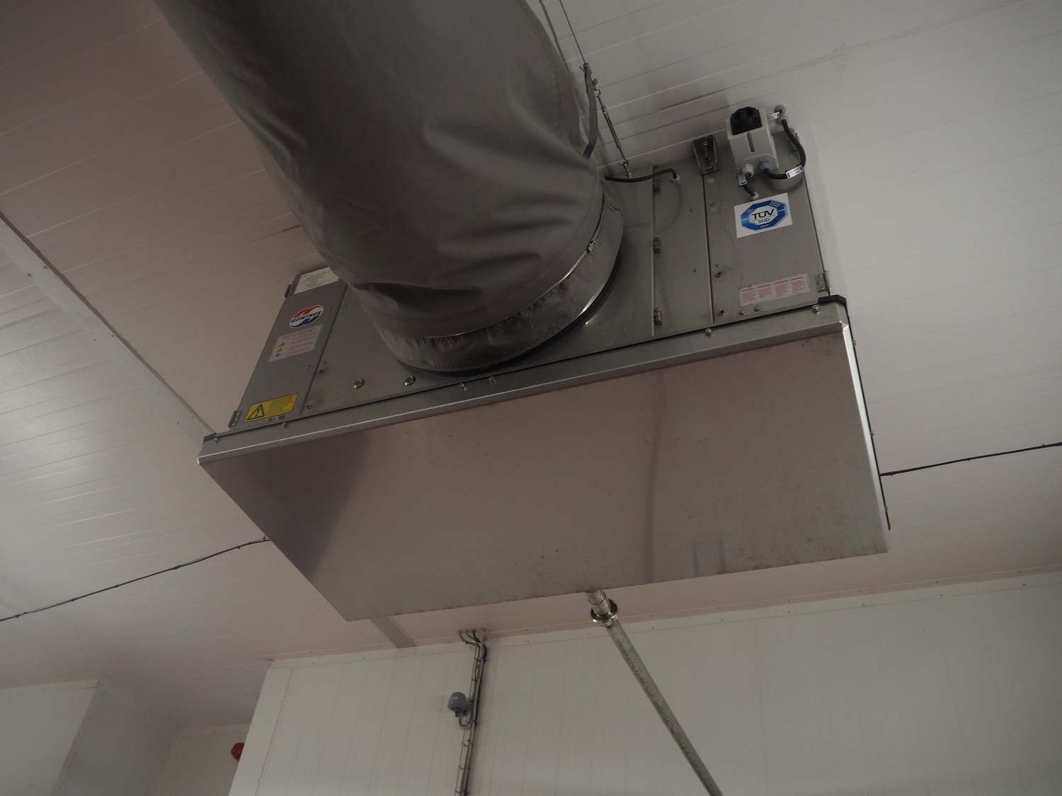 Güntner GmbH & Co. KG s/s evaporator with air sock, device type: S-GGHN 050.2H/17-ANS51/16P.E, serial number: 404204095/15.01770, year of construction: 2015, maximum / minimum pressure: 16 bar / -1 bar, maximum / minimum temperature: 100°C / -50°C, volume: 23.6 liter, 1 fan, dimensions: 1400 mm x 1000 mm x 750 mm.