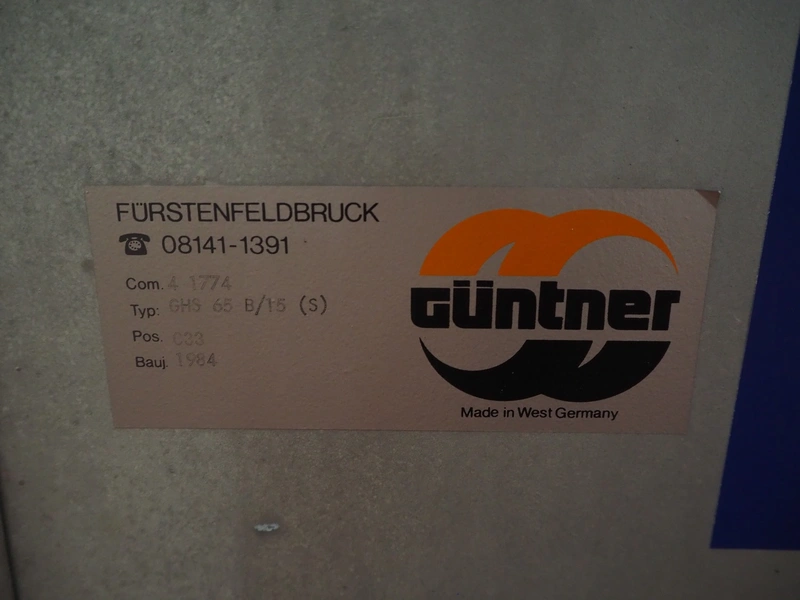 Güntner GmbH & Co. KG s/s evaporator, type: GHS 65 B/15 (S), number: 4 1774, year of construction: 1984, 1 fan, dimensions: 1550 mm x 1300 mm x 1000 mm.