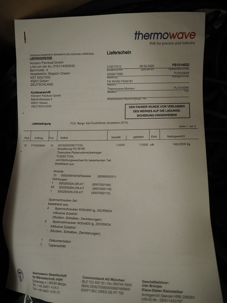 Pallet with parts for Thermowave heat exchanger, dimensions plates: 1000 mm x 440 mm.