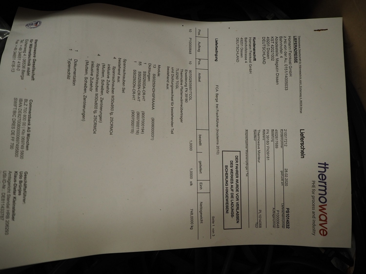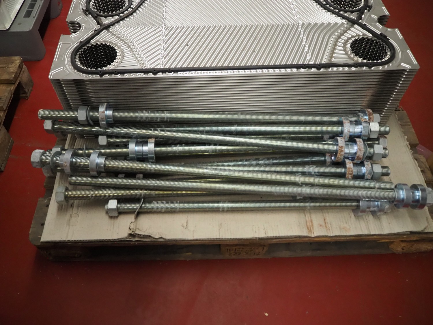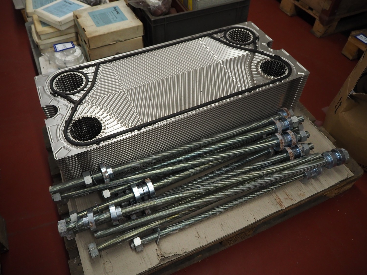 Pallet with parts for Thermowave heat exchanger, dimensions plates: 1000 mm x 440 mm.