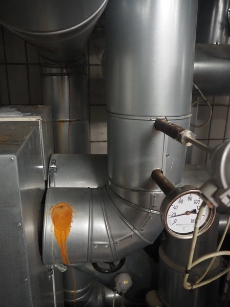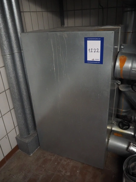 Heat exchanger with insulated pressure vessel and Grundfos pump, dimensions: 900 mm x 700 mm x 1400 mm.