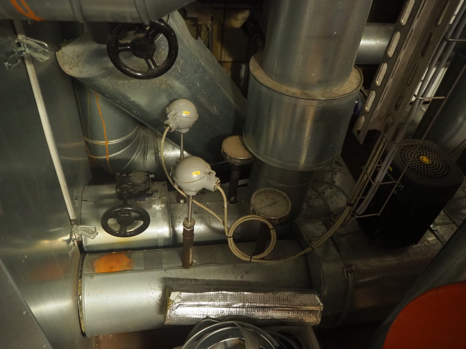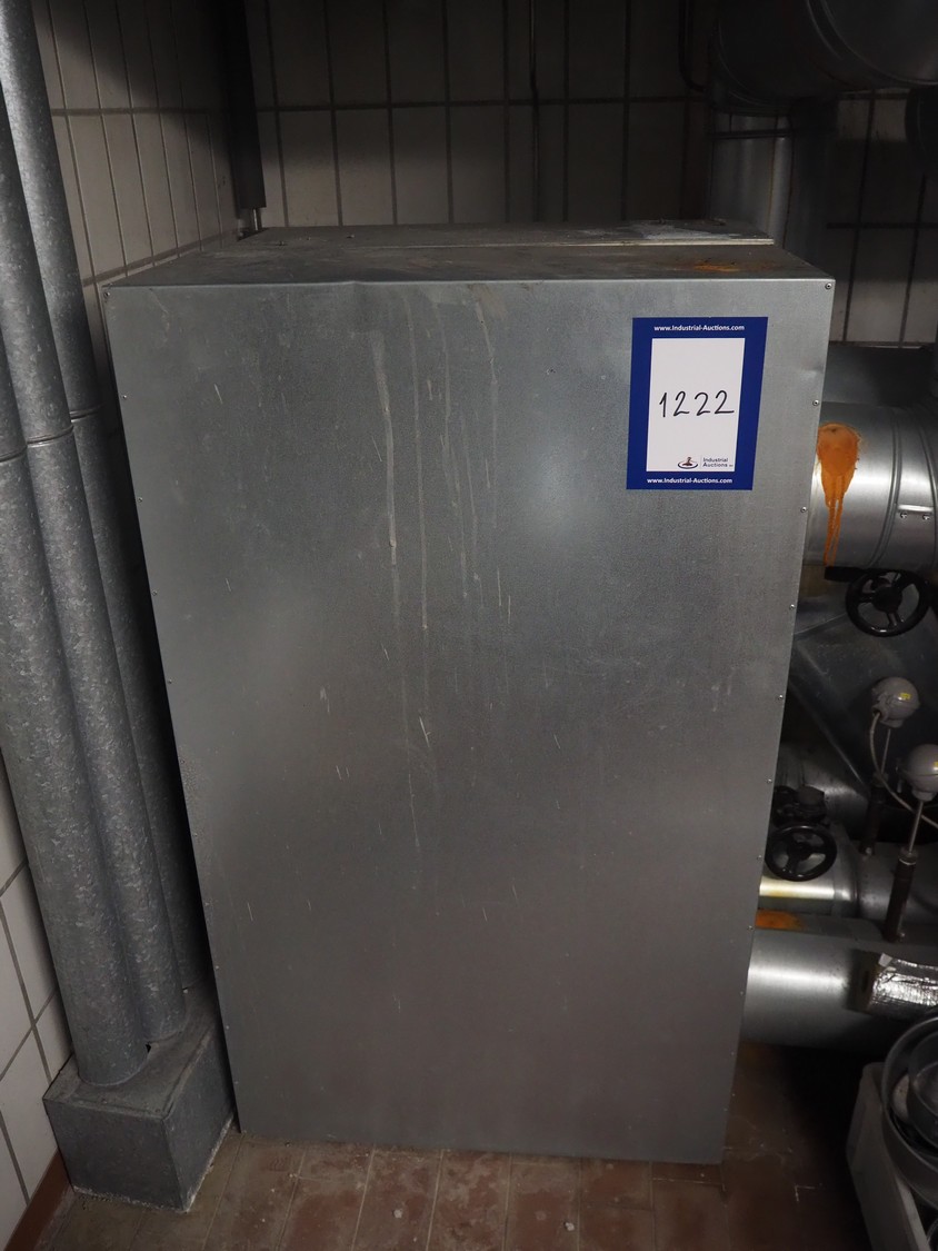 Heat exchanger with insulated pressure vessel and Grundfos pump, dimensions: 900 mm x 700 mm x 1400 mm.