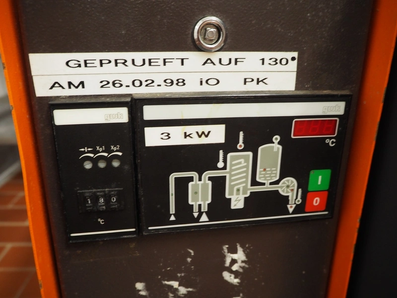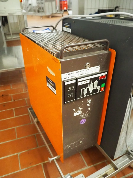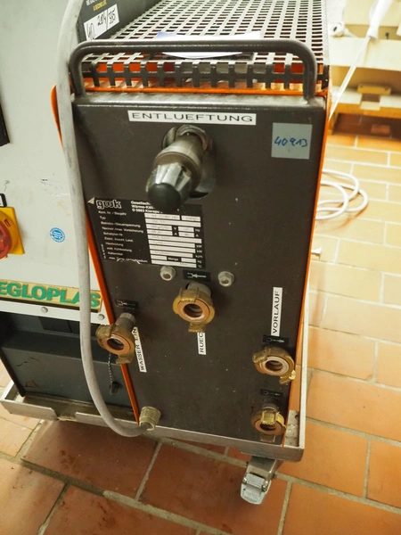 GWK temperature control unit and Regoplas temperature control unit, type: 150 KL / 7 / TB21 / 1K / RT40, 380 V, 1 Ph, 50 Hz, 12.2 A, 7.6 kW, volume: 9.6 dm³, maximum: 90˚C, type: TW 33, serial number: 11 2219 00, year of construction: 1987, 380 / 220 V, 50 Hz, 14.6 A, heating capacity: 3 kW, dimensions: 230 mm x 620 mm x 600 mm and dimensions: 230 mm x 750 mm x 750 mm.