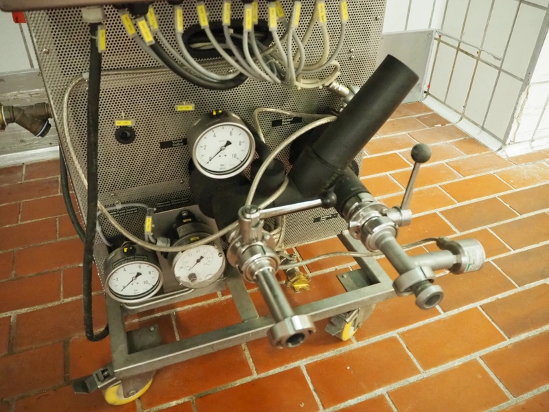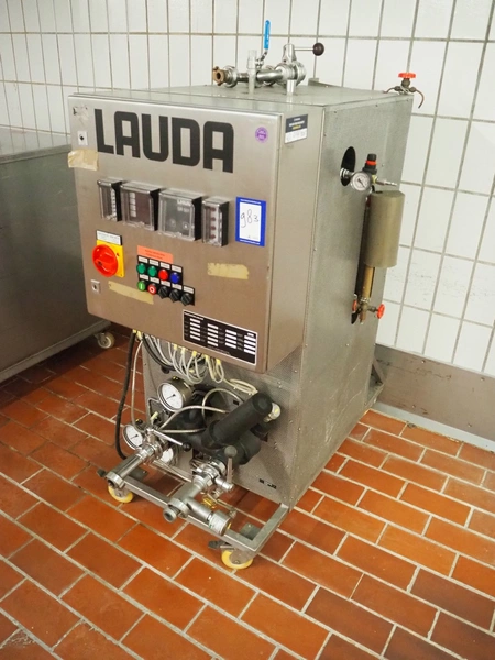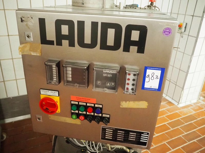 Lauda mobile process cooling unit, type: SUK 350 W, number: Z 13 001, year of construction: 2001, 400 V, 3 Ph, 50 Hz, 11.1 kW, heat carrier: SYLTHERM XL T, 50 kg, medium: R410A, 7 kg, total dimensions: 900 mm x 1500 mm x 1370 mm.