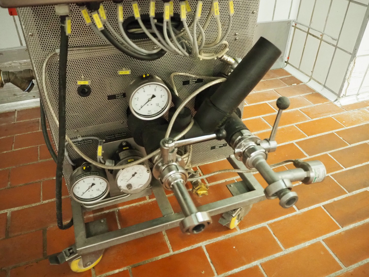 Lauda mobile process cooling unit, type: SUK 350 W, number: Z 13 001, year of construction: 2001, 400 V, 3 Ph, 50 Hz, 11.1 kW, heat carrier: SYLTHERM XL T, 50 kg, medium: R410A, 7 kg, total dimensions: 900 mm x 1500 mm x 1370 mm.