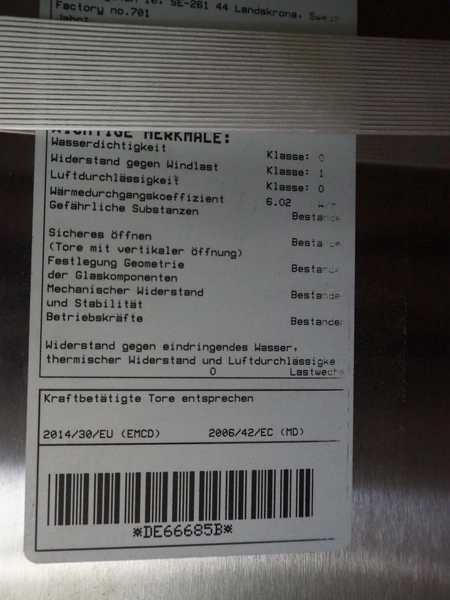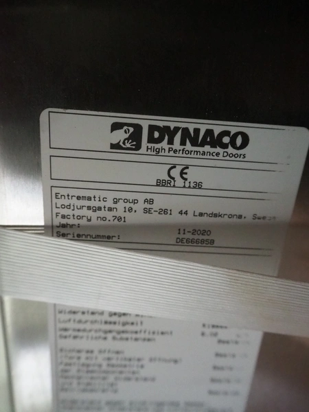 Dynaco electric high speed shutter door, type: D-313, serial number: DE66685B, year of construction: 11-2020, dimensions: 2200 mm x 2600 mm. Already dismantled.