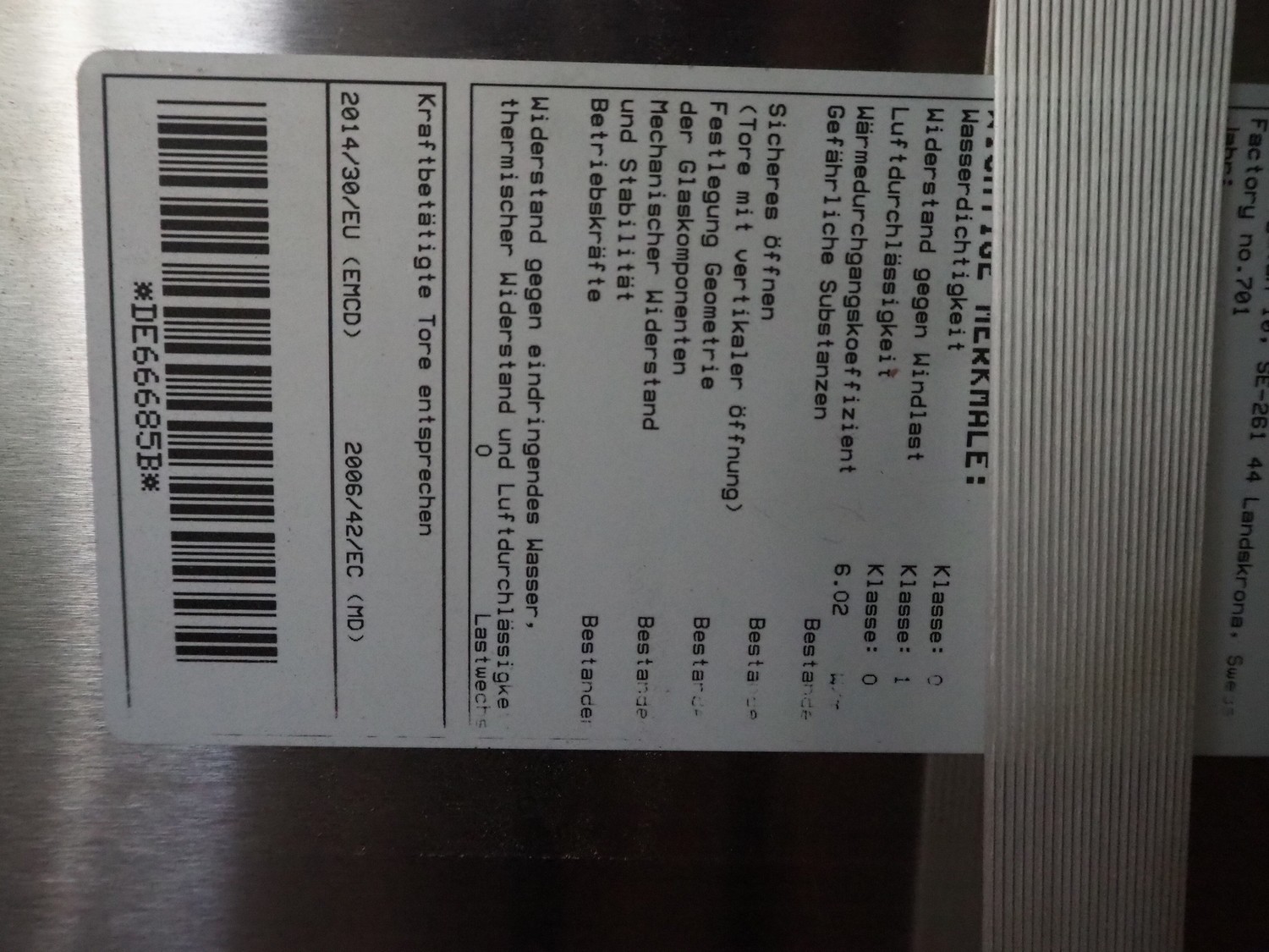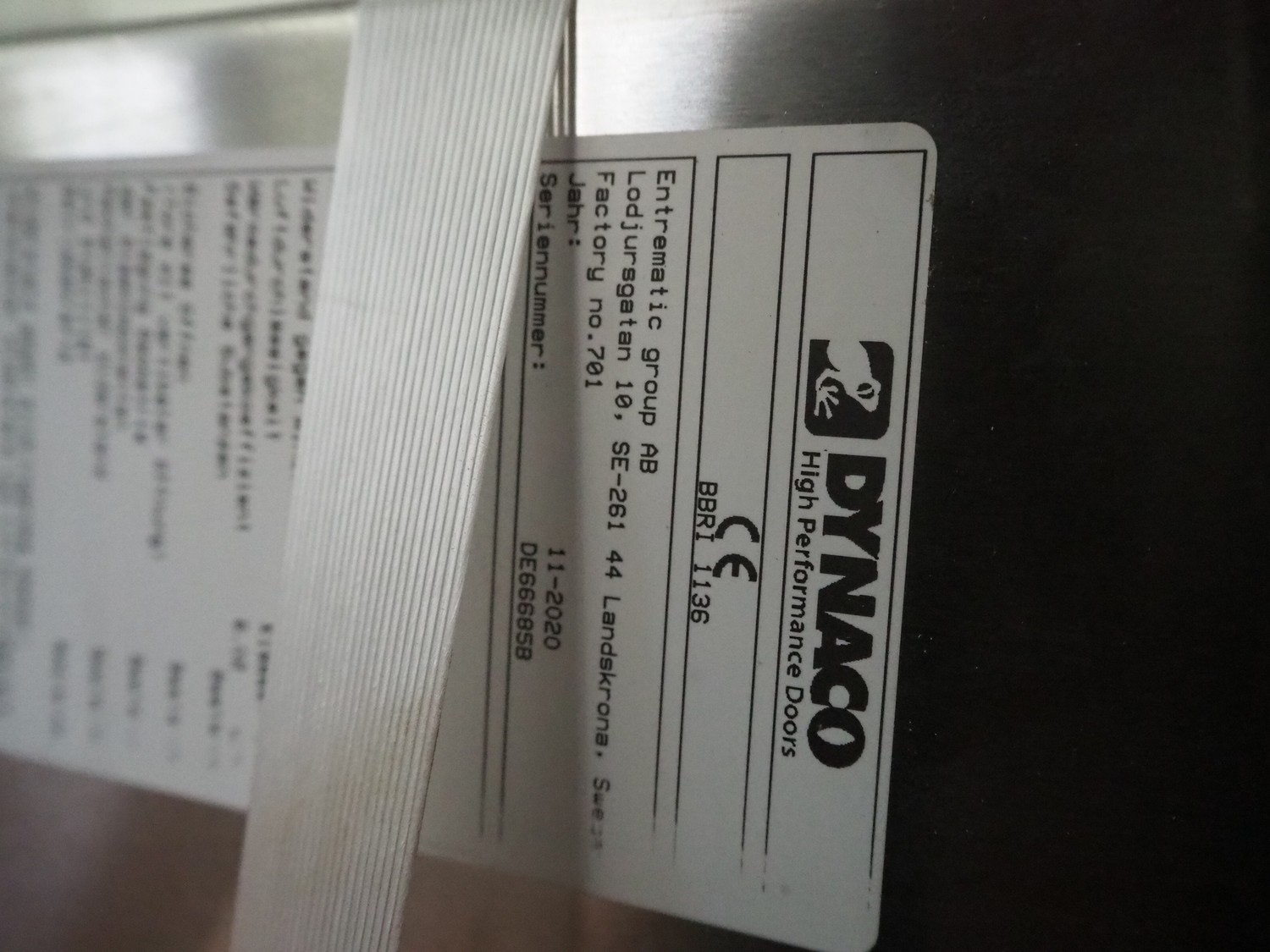 Dynaco electric high speed shutter door, type: D-313, serial number: DE66685B, year of construction: 11-2020, dimensions: 2200 mm x 2600 mm. Already dismantled.
