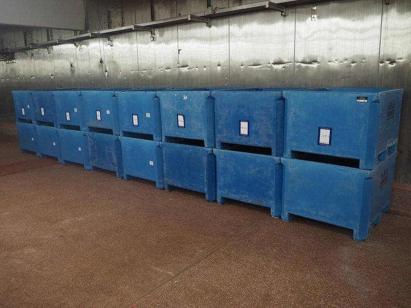16 Saeplast pallet boxes, volume each: 630 liter, dimensions: (16x) 1200 mm x 1000 mm x 780 mm.