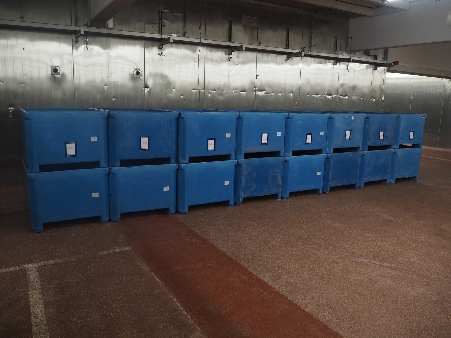 16 Saeplast pallet boxes, volume each: 630 liter, dimensions: (16x) 1200 mm x 1000 mm x 780 mm.