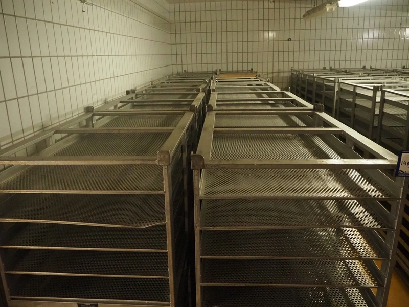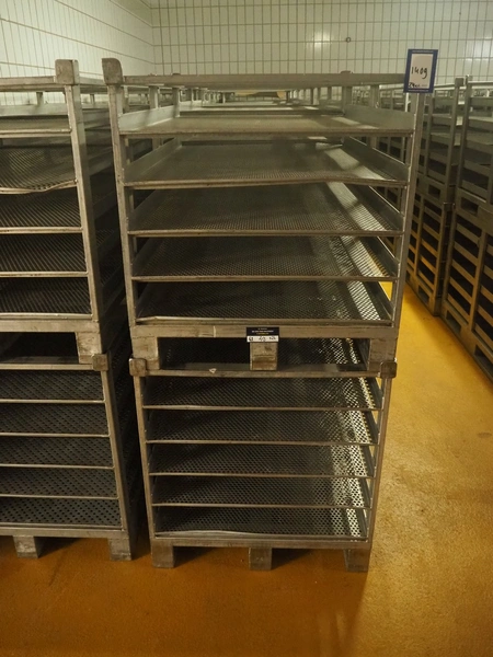 24 s/s cooking racks, 5 floors each, dimensions each floor: 1200 mm x 750 mm, total dimensions: (24x) 1200 mm x 800 mm x 870 mm.