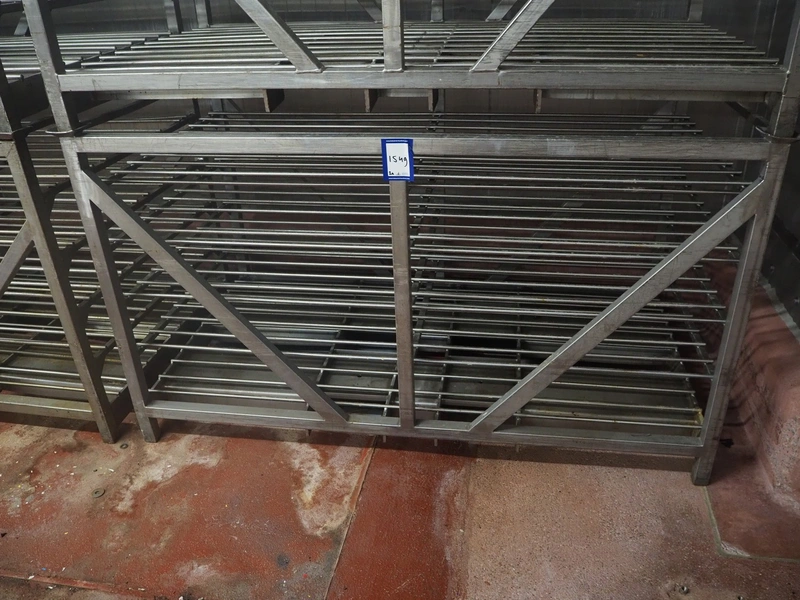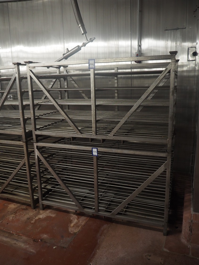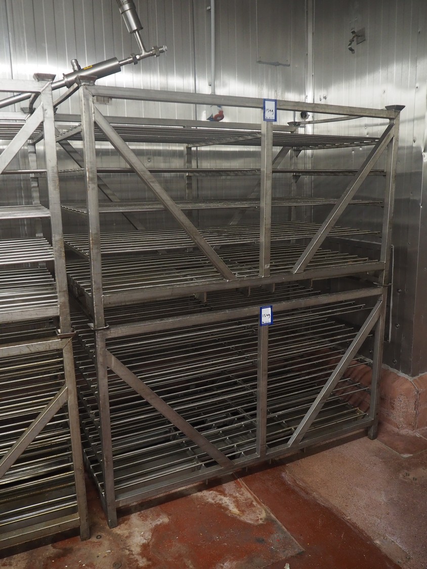 2 s/s cooking racks, 5 floors each, dimensions each floor: 1700 mm x 860 mm, total dimensions: (2x) 1700 mm x 980 mm x 1000 mm.