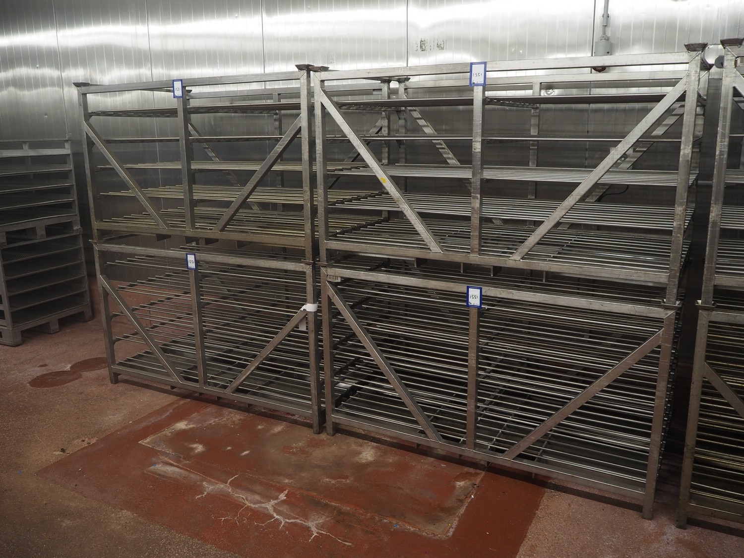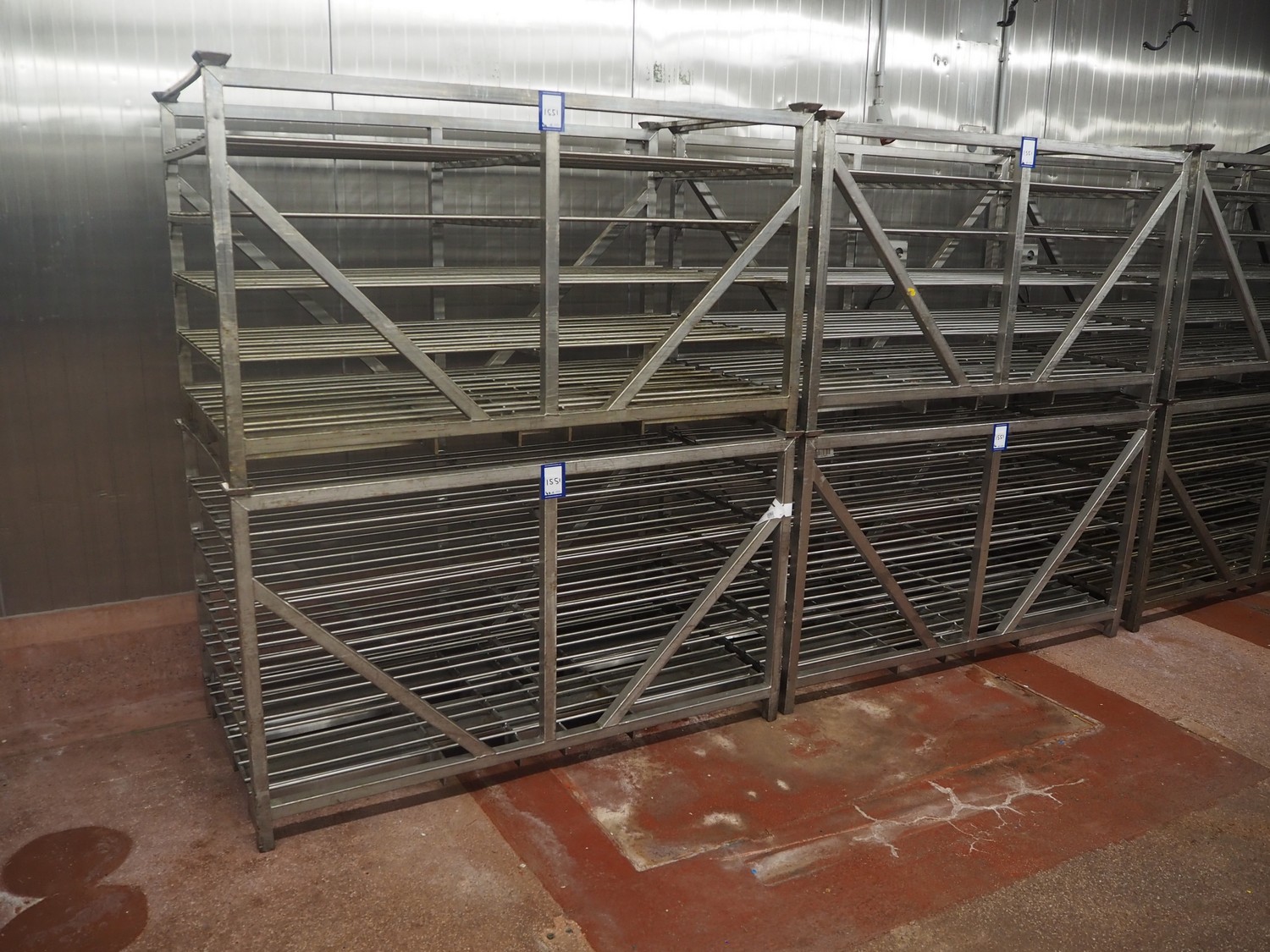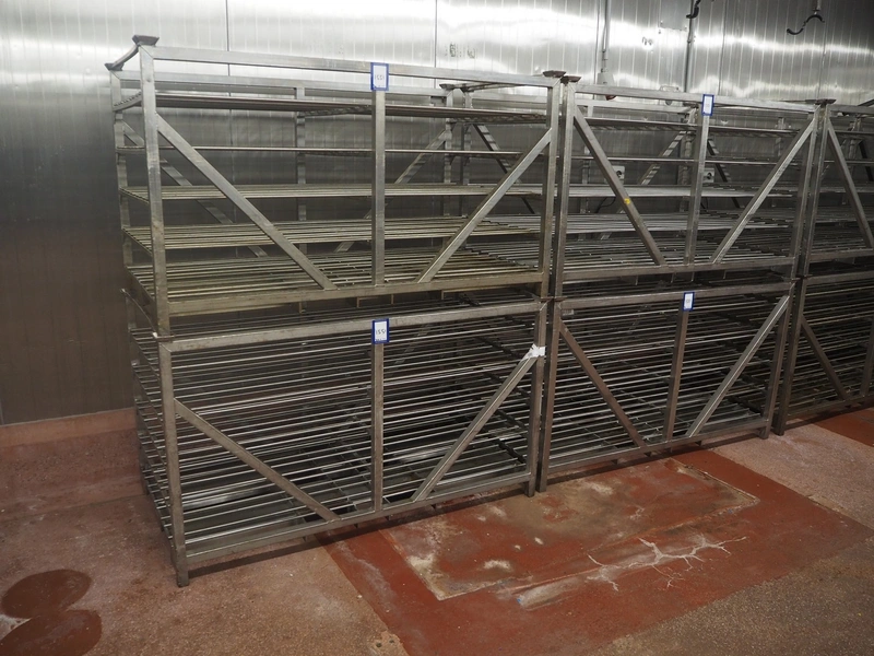 4 s/s cooking racks, 5 floors each, dimensions each floor: 1700 mm x 860 mm, total dimensions: (4x) 1700 mm x 980 mm x 1000 mm.