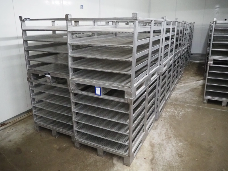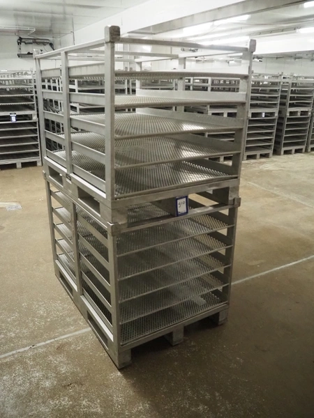 24 s/s cooking racks, 5 floors each, dimensions each floor: 1200 mm x 750 mm, total dimensions: (24x) 1200 mm x 800 mm x 870 mm.