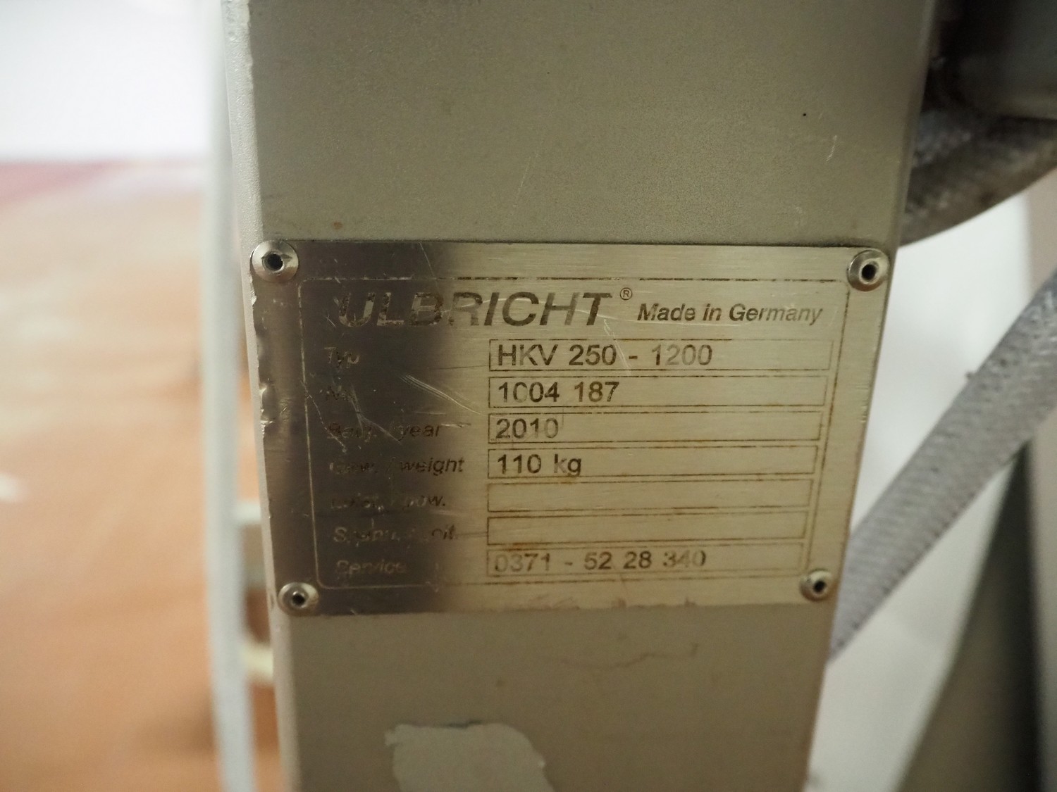 Ulbricht s/s mobile tilting device, type: HKV 250-1200, serial number: 1004 187, year of construction: 2010, machine weight: 110 kg, tilting height: 1200 mm, total dimensions: 1300 mm x 1200 mm x 1500 mm.