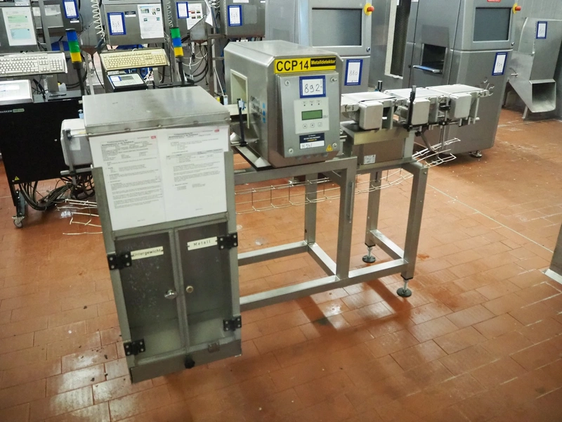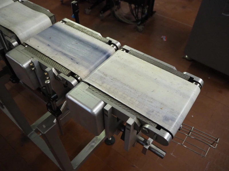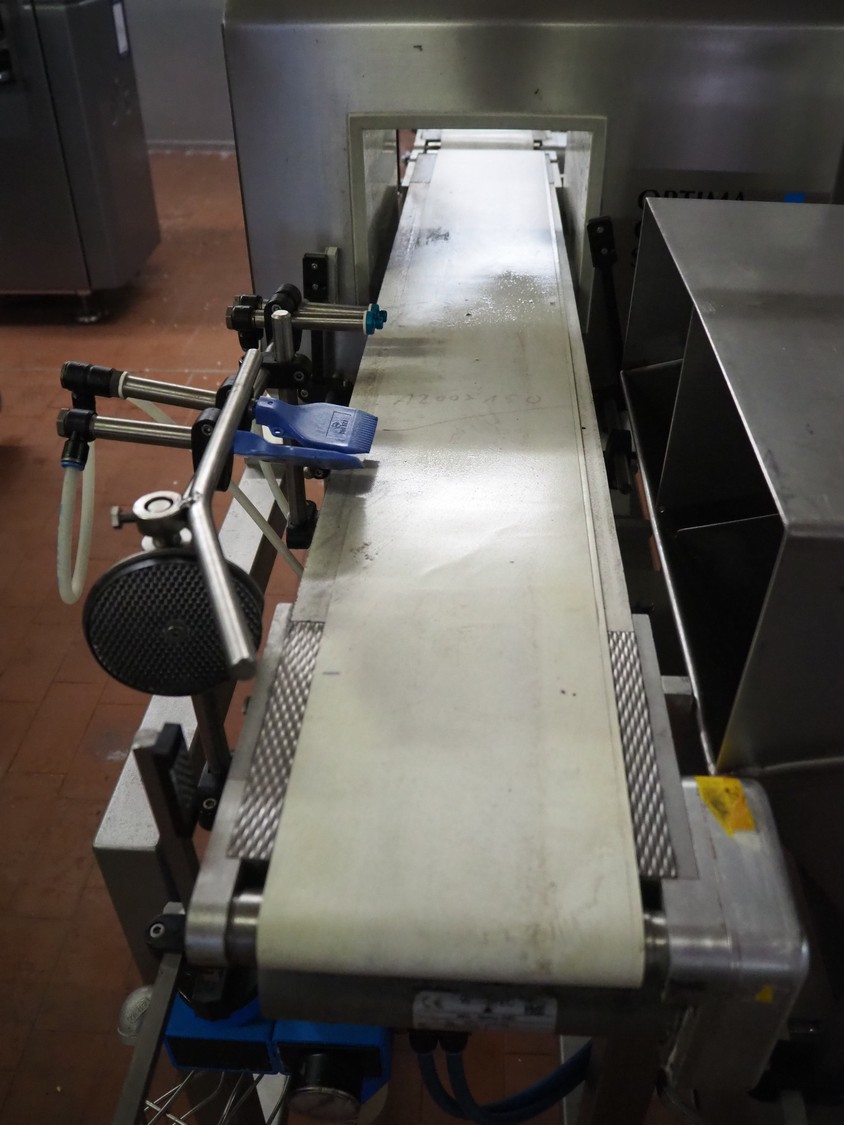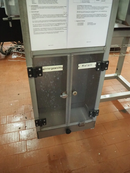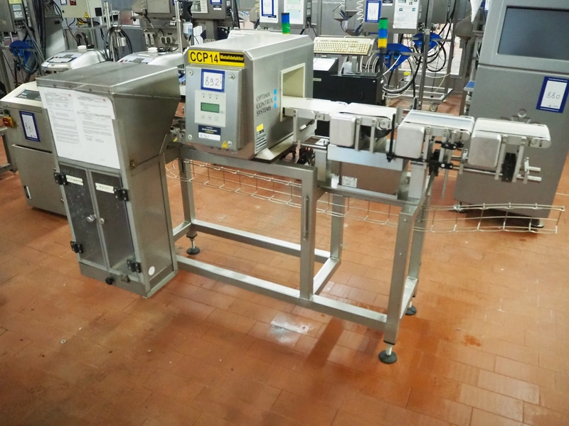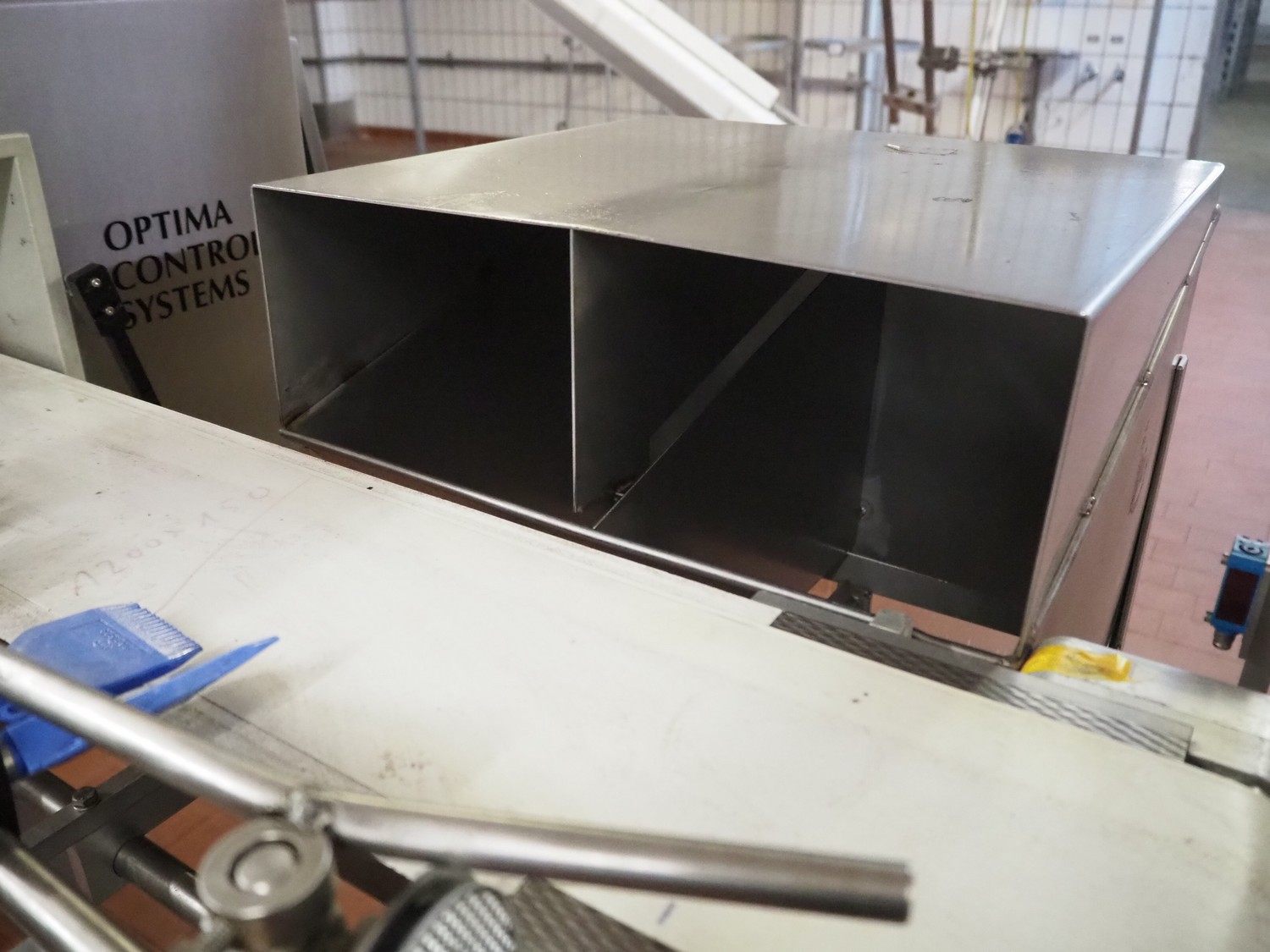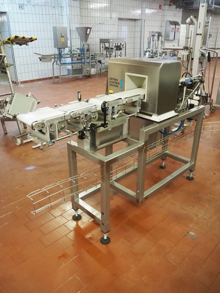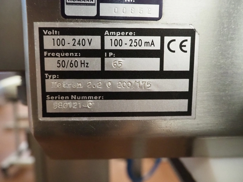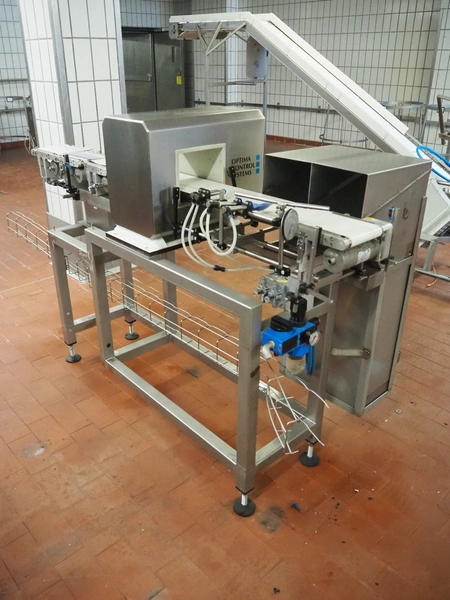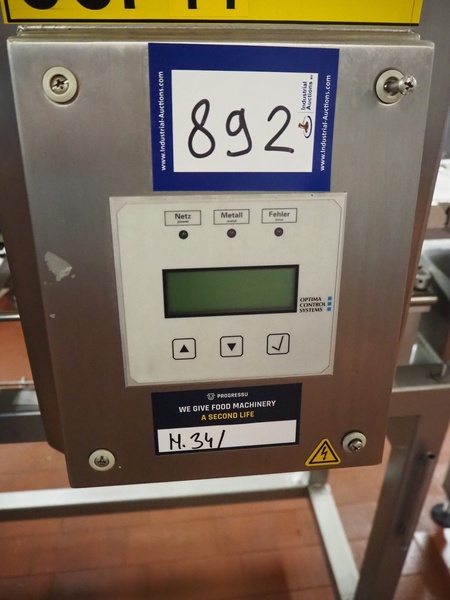 OCS checkweigher and metal detector, type metal detector: Metron 2.2 C 200/175, serial number: 980121-C, 100-240 V, 50/60 Hz, 100-250 mA, plastic belt, belt width: 140 mm, clearance: 200 mm x 130 mm, total dimensions: 1950 mm x 750 mm x 1150 mm. Missing control unit for checkweigher. Technical condition unknown.