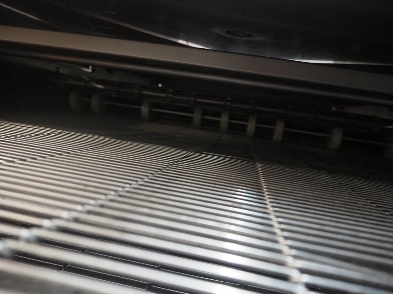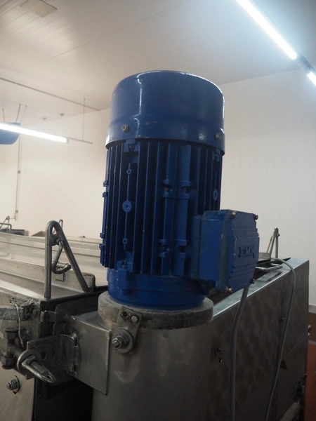 Mobile coating machine, s/s mesh belt, belt width: 1200 mm, total dimensions: 2800 mm x 1600 mm x 1850 mm.